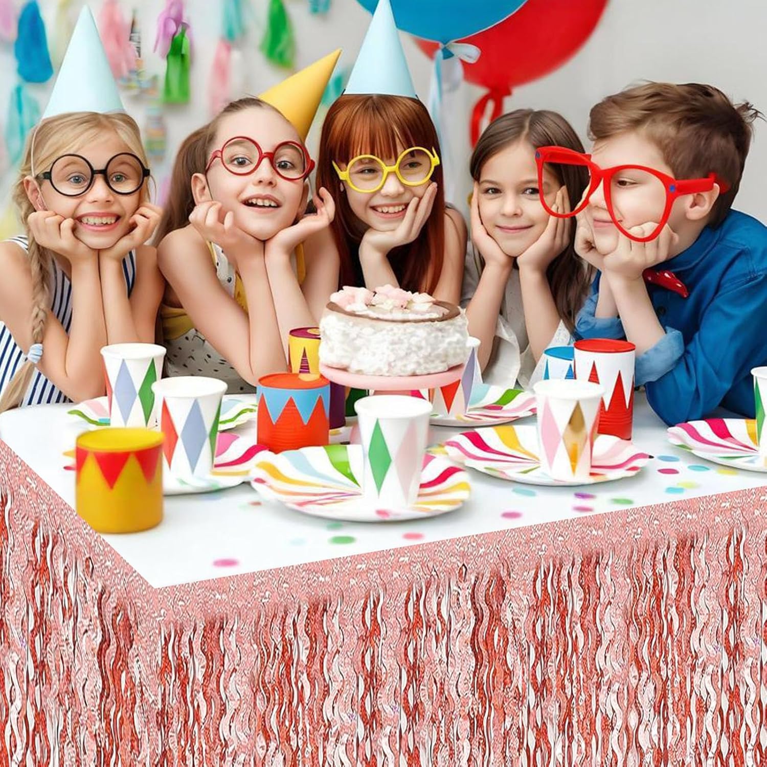 • Package Includes: 6pcs/set metallic fringe table skirts / shiny tassel banner, beautiful and shiny, provide you with great decoration effects, Each pack of table skirt measures 29x108 inches. Each one will be 9 Ft long, 6 pack will cover 54 FT length of tables.