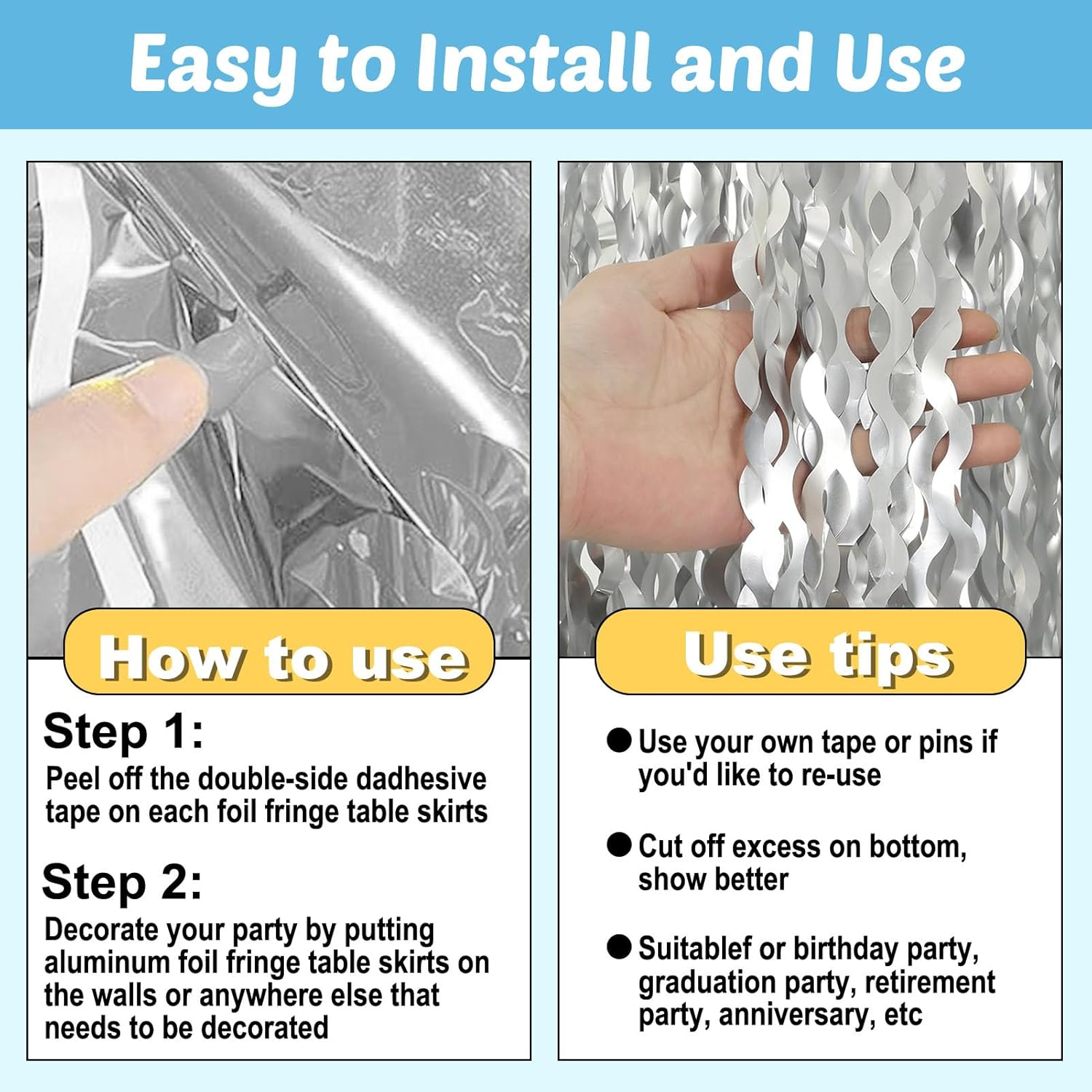 • Beautiful decoration: you can use these tinsel fringe table skirt to decorate a classroom, the stage for school program, a homecoming float, a wedding decoration, birthday party, Disco party, baby shower, halloween, christmas, new year's eve, bachelorette party, anniversary Memorial, Hollywood Party, independence Day, Carnival Party, Bridal Shower, Graduation and more.