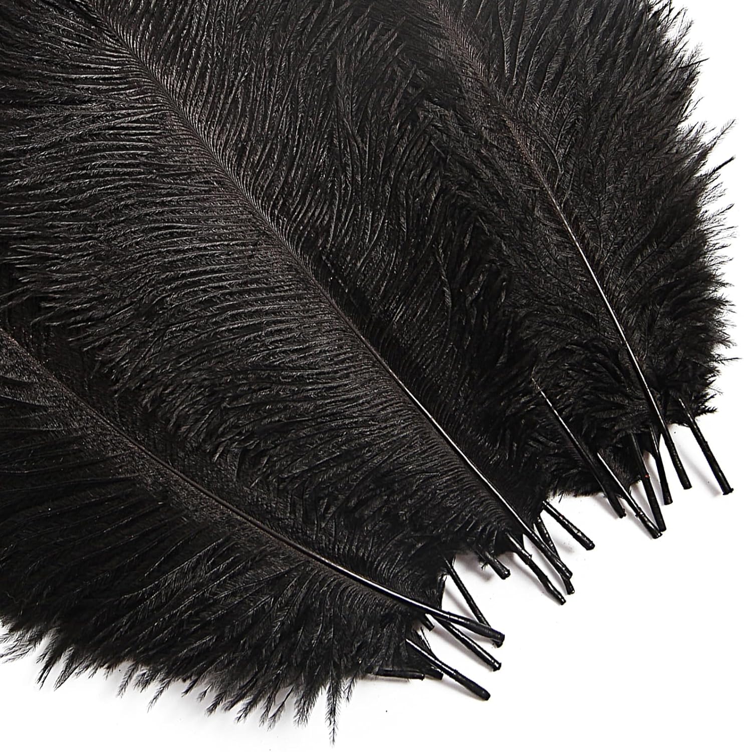 Bulk Black Ostrich Feathers - 12Pcs 12-14inch Crafting Supplies for Centerpiece Table Decorations (Black)