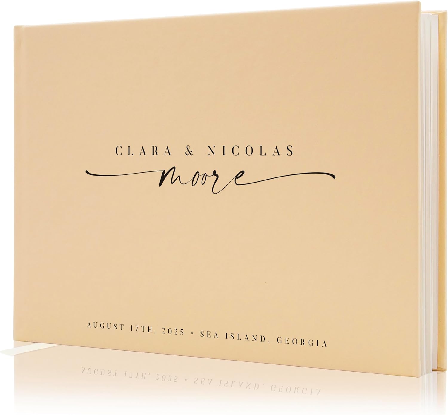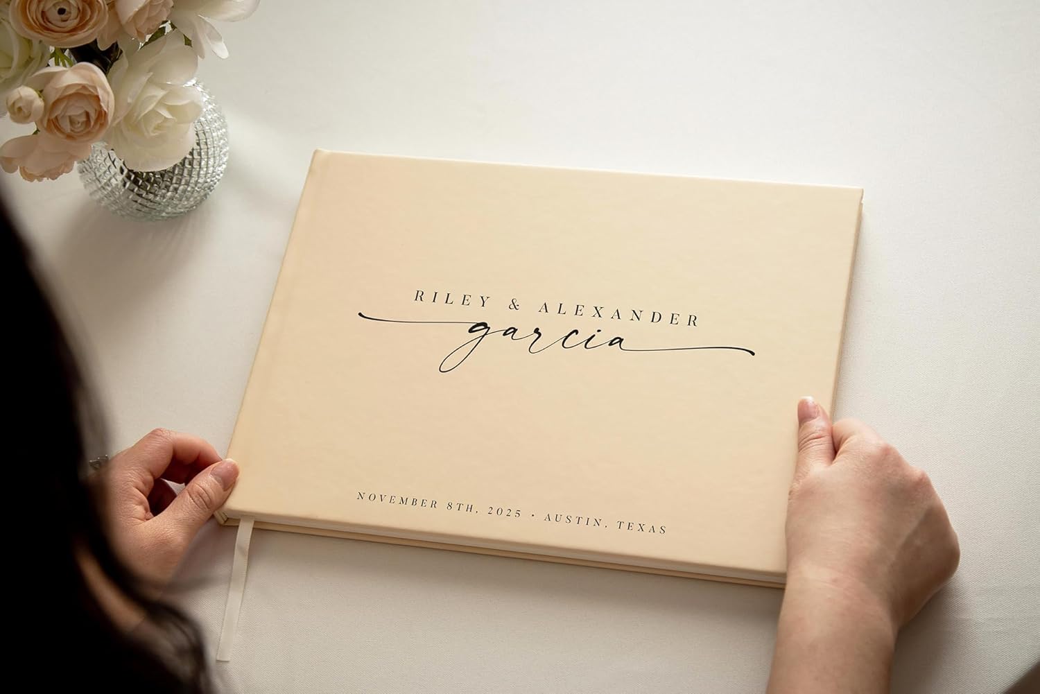 Personalized Guest Book - 11.5" x 8.5" Custom Bride & Groom Names with Bookmark and Hard Cover 140 GSM Blank Pages, for Weddings Guest Book, Engagements, Birthdays, Special Events, Butter