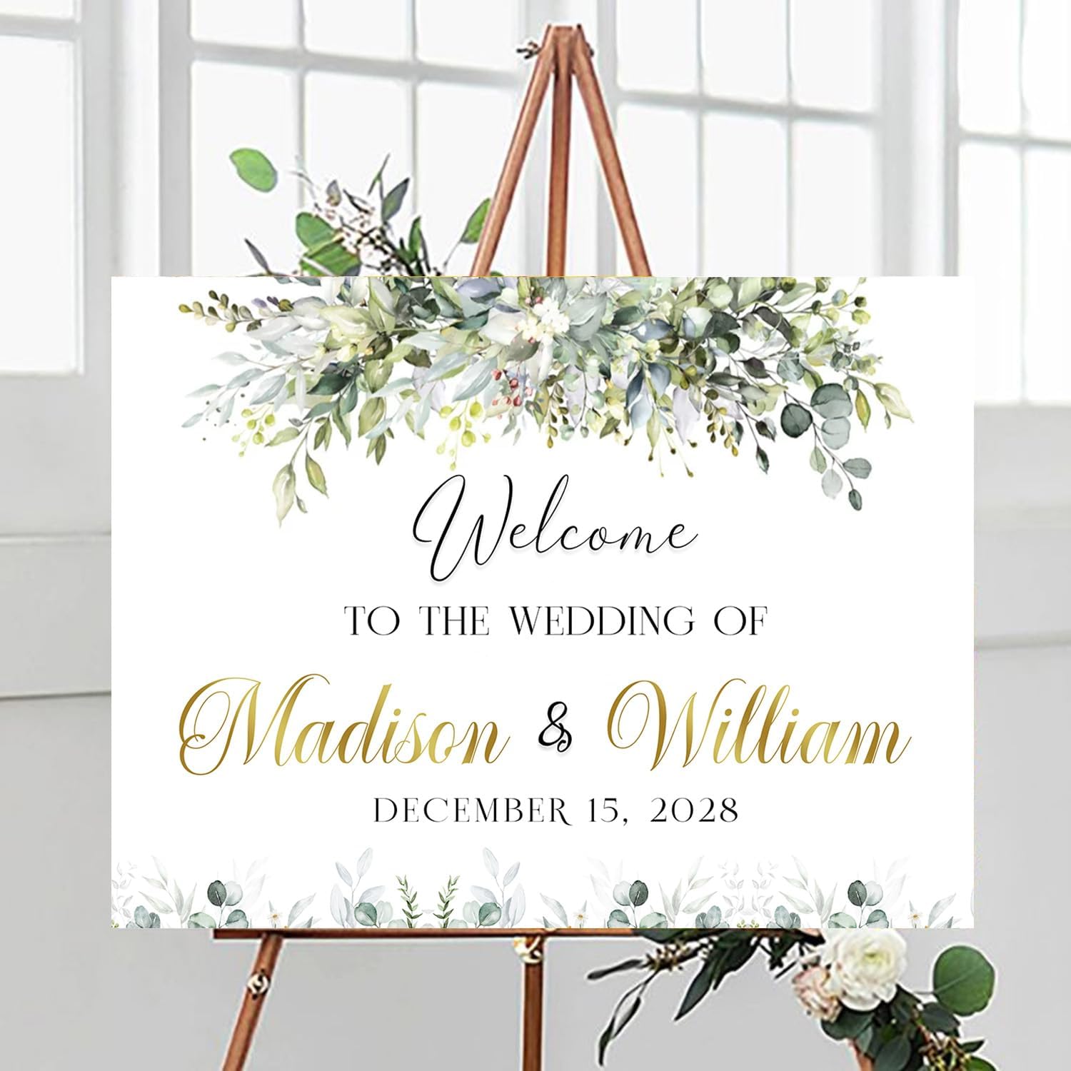 Personalized Wedding Welcome Sign, Easel Stand For Wedding Sign, Rehearsal Dinner Sign, Reserved Signs For Wedding, Greenery Floral Theme Wedding Sign Decoration