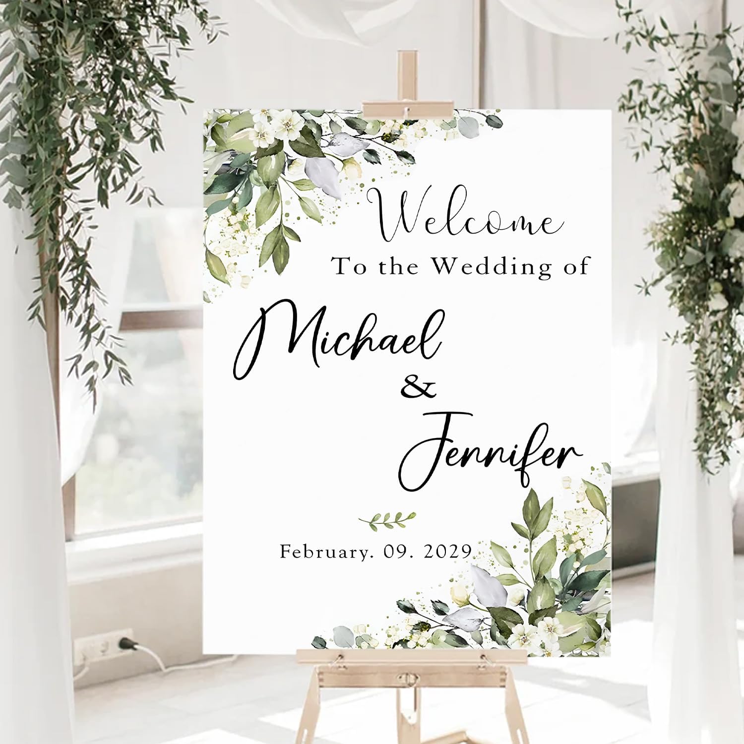 Custom Wedding Welcome Sign, Rustic Wedding Signs, Wedding Decorative Signage, Wedding Reception Signs, Greenery Theme Wedding Sign Decoration, Wedding Sign Flowers