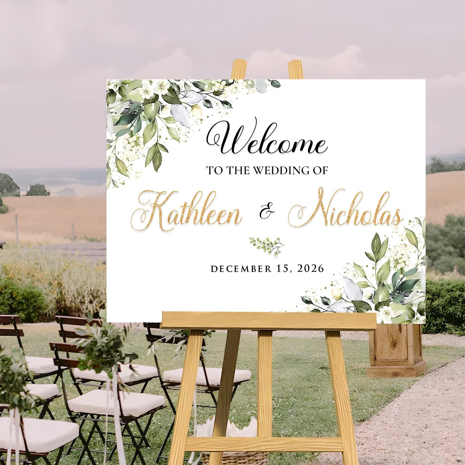 Wedding Signs For Ceremony And Reception, Wedding Welcome Sign, Wedding Welcome Sign Stand, Welcome Sign For Wedding Entrance, Greenery Theme Wedding Sign Decoration