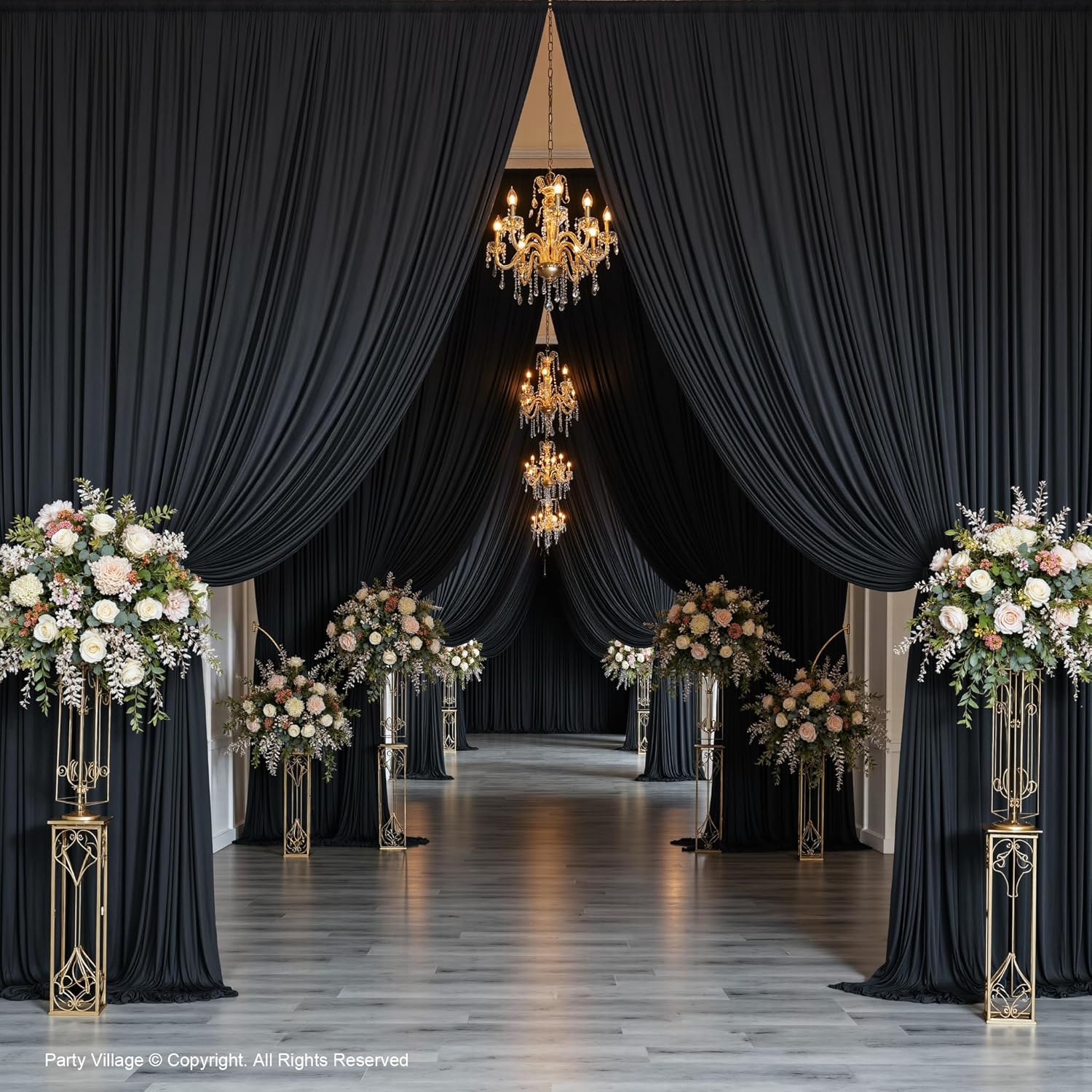 PartyVillage 60ft×15ft Black Backdrop Curtain for Halloween Parties, 12 Panels Wrinkle Free 15 FT Long Polyester Photo Backdrop Drapes Back Drop Cloth for Birthday Photography Background