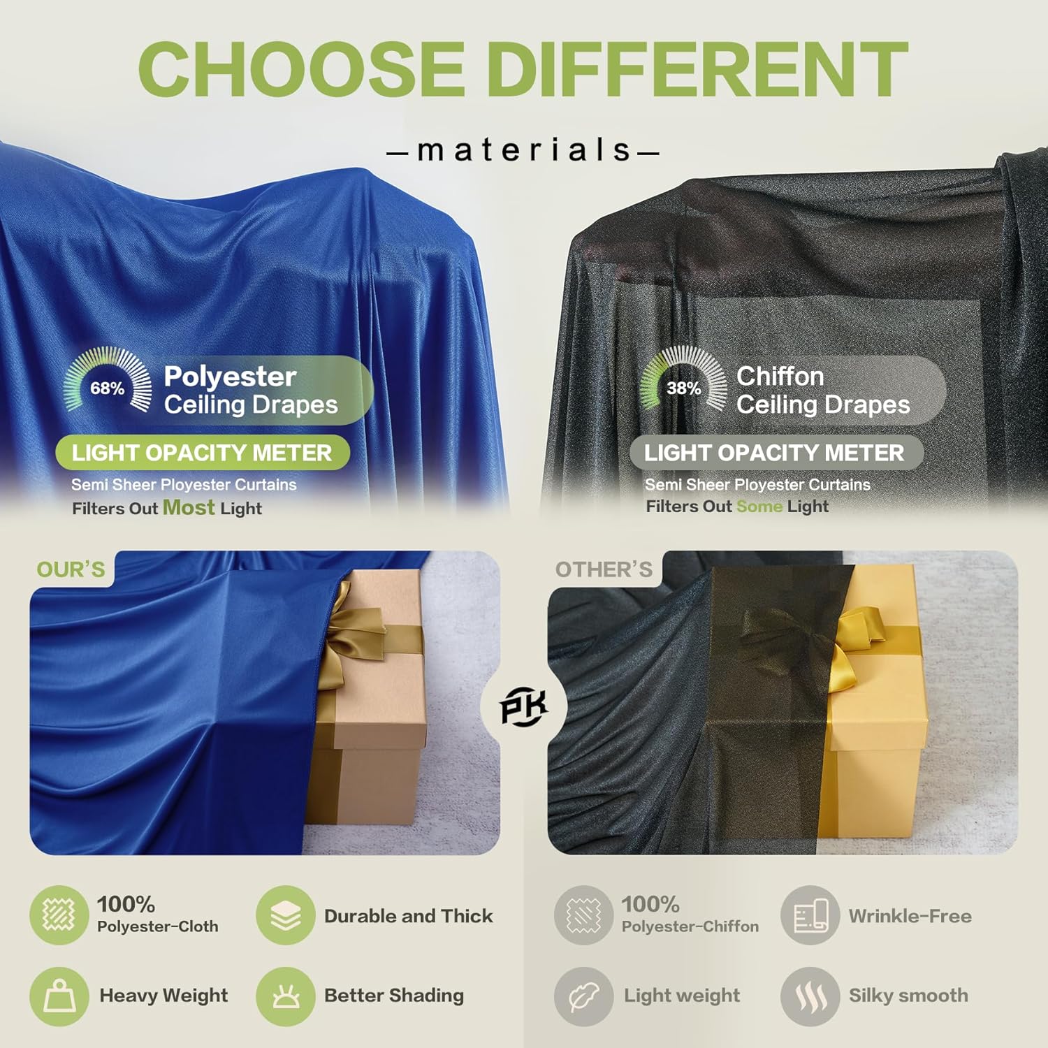 • Wrinkle Free Fabric: Silky Touch Feeling; Drape Nicely; Washable; Ironable; Reusable. You can keep this 15 ft extra long backdrop drapes for future events. The soft fabric backdrops are perfect to create beautiful folds or leave it flowing loose onto the floor.