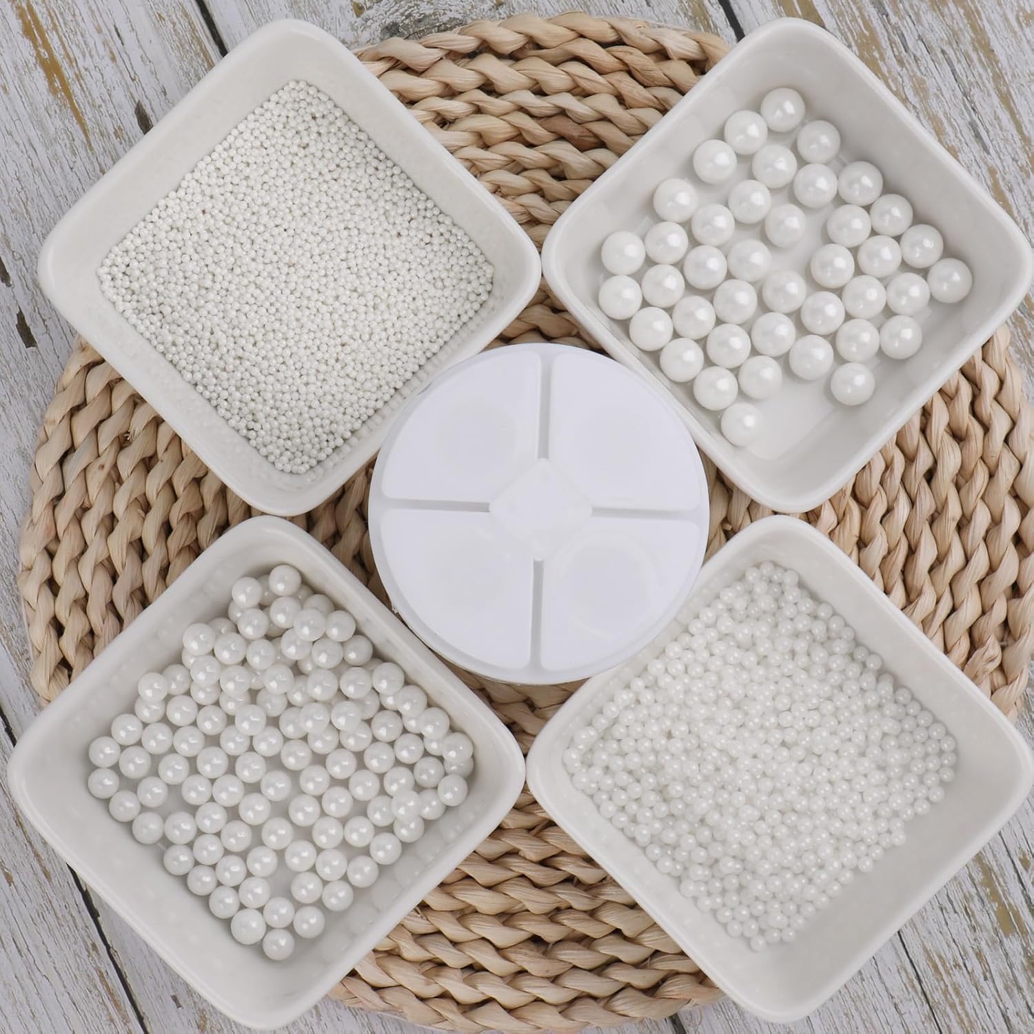 Sprinkles for Cake Decorating, 11Oz White Pearl Sprinkles 6 Sizes Mix for Cake Cupcake Ice Cream Donuts Cookie Baking Toppings