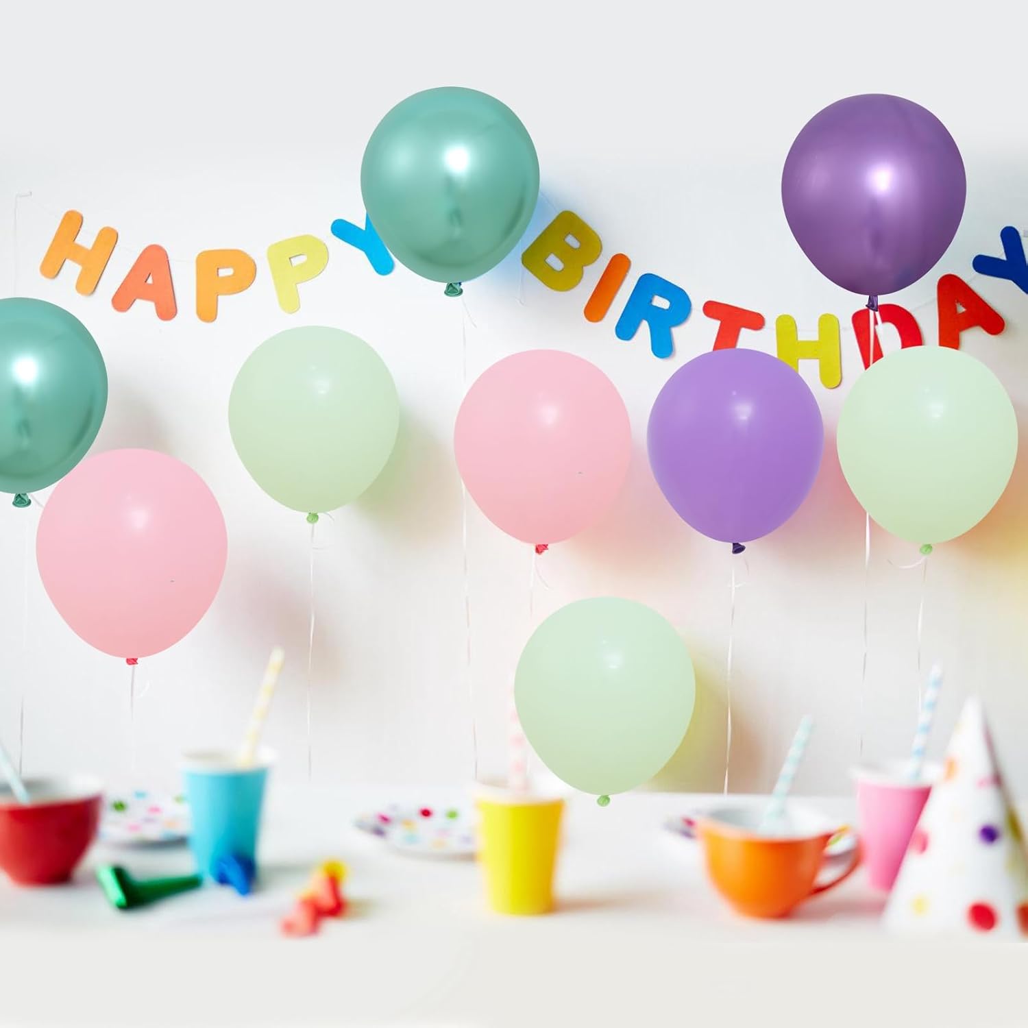 • Package Include: Our mermaid balloons kit includes 15 pcs pastel pink balloons, 15 pcs pastel purple balloons, 10 pcs pastel green balloons, 5 pcs metallic purple balloons, 5 pcs metallic green balloons, 1 hot pink ribbon and 1 green ribbon