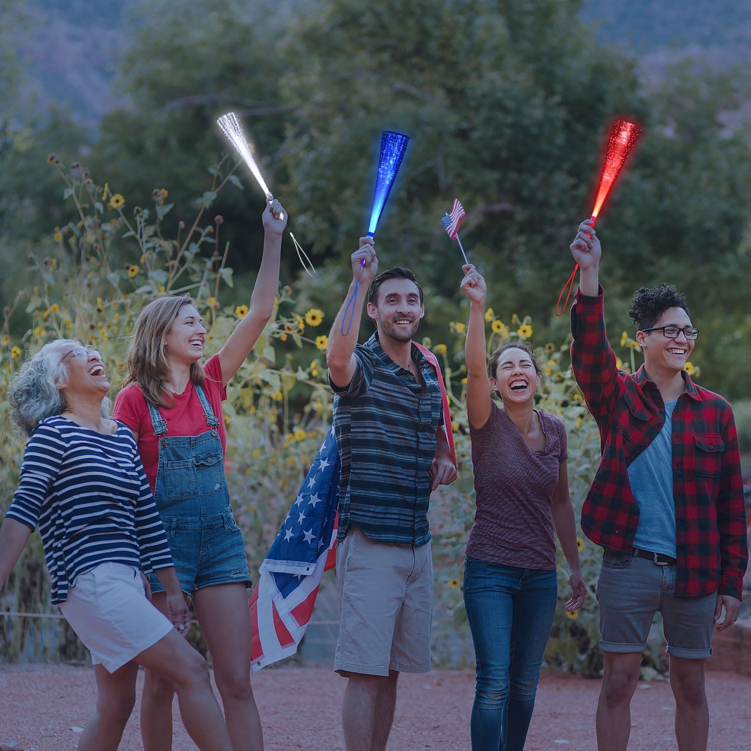 • Glow Fiber Wands: You will get total 48 pack of red blue white light fiber optic wands (16 of each color). These bulk light up toys can bright enough to attract anyone's sights, you can have fun with your friends at evening party with these colorful flashing wand stick