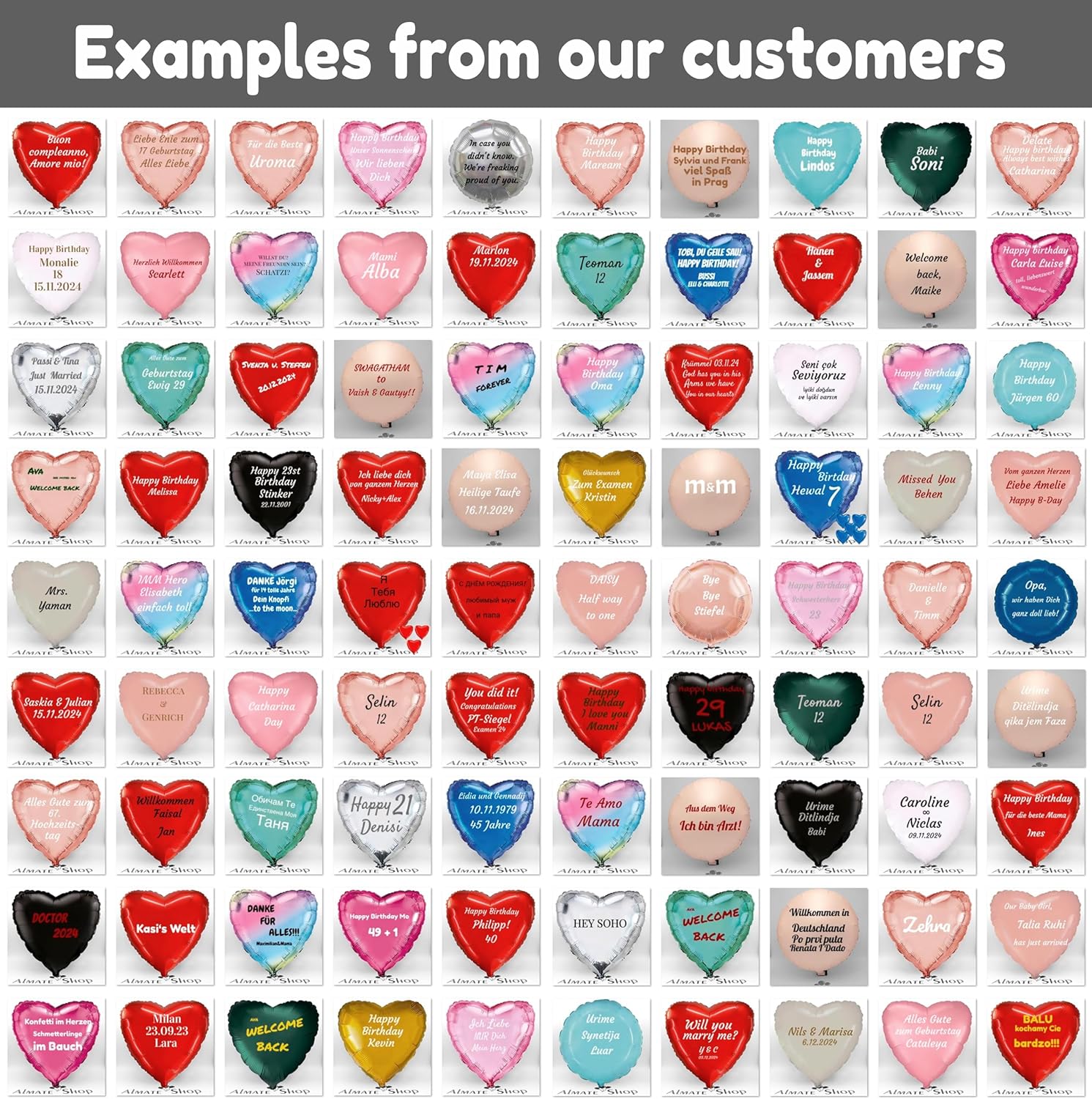 • Large choice of colours for heart balloons (satin or glossy) and inscription colour. Balloon size: approx. 19 Inch. Finished product, you only need to fill the balloon with helium or air.