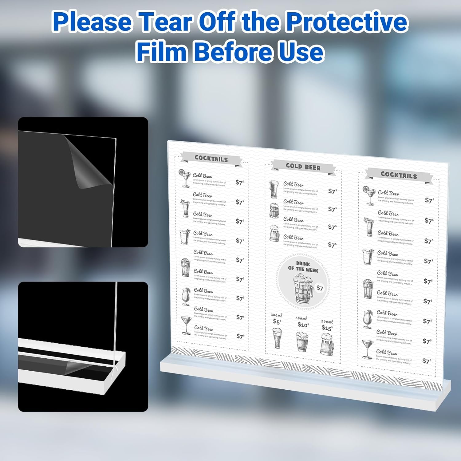 • Protective Film for Scratch-Free Surface: Each sign holder comes with a protective film on both sides to safeguard against scratches during transportation and handling. Before use, remember to remove the protective film on both sides for a scratch-free surface.