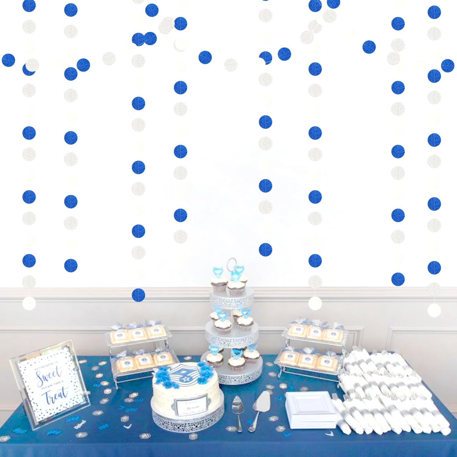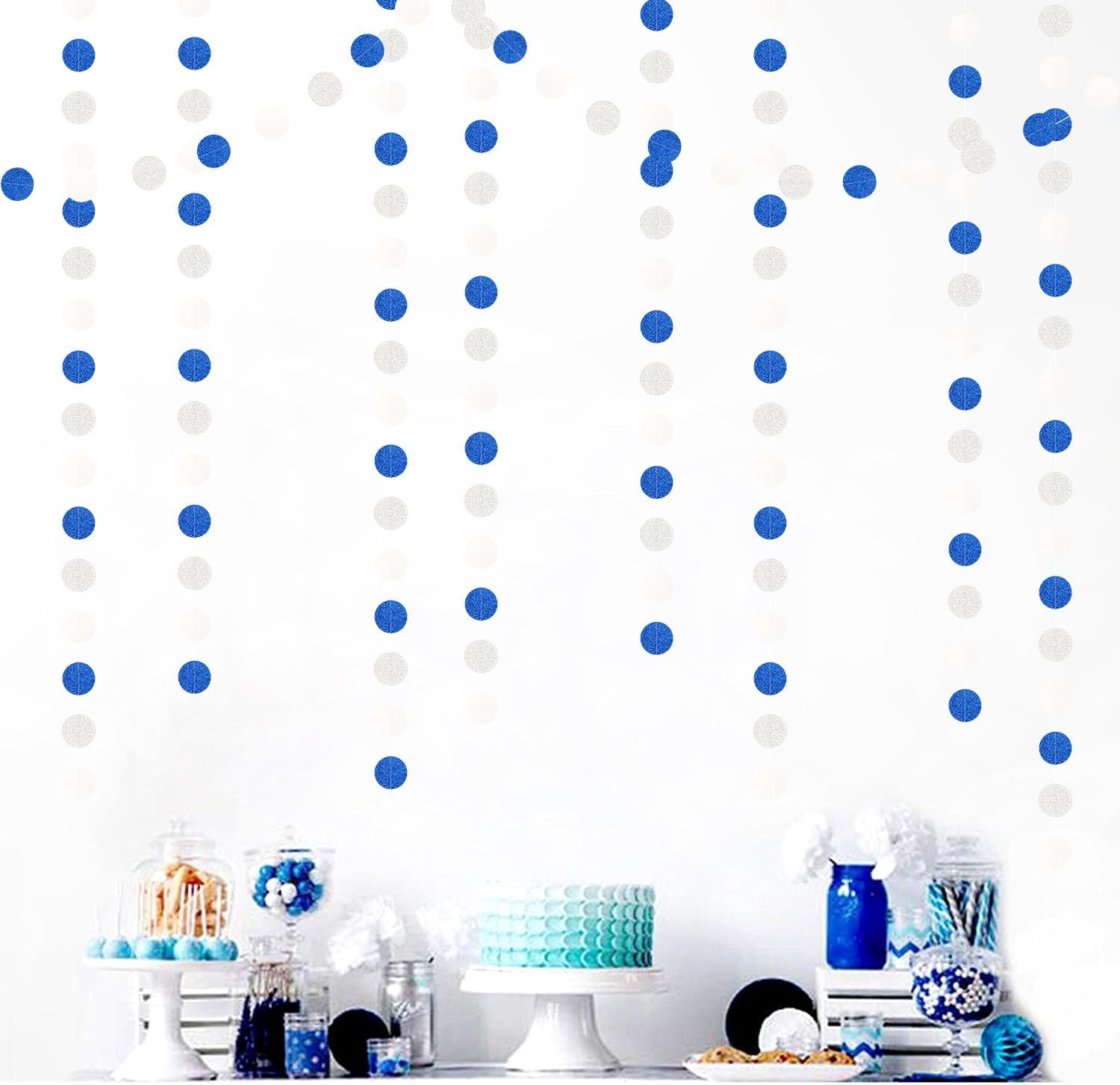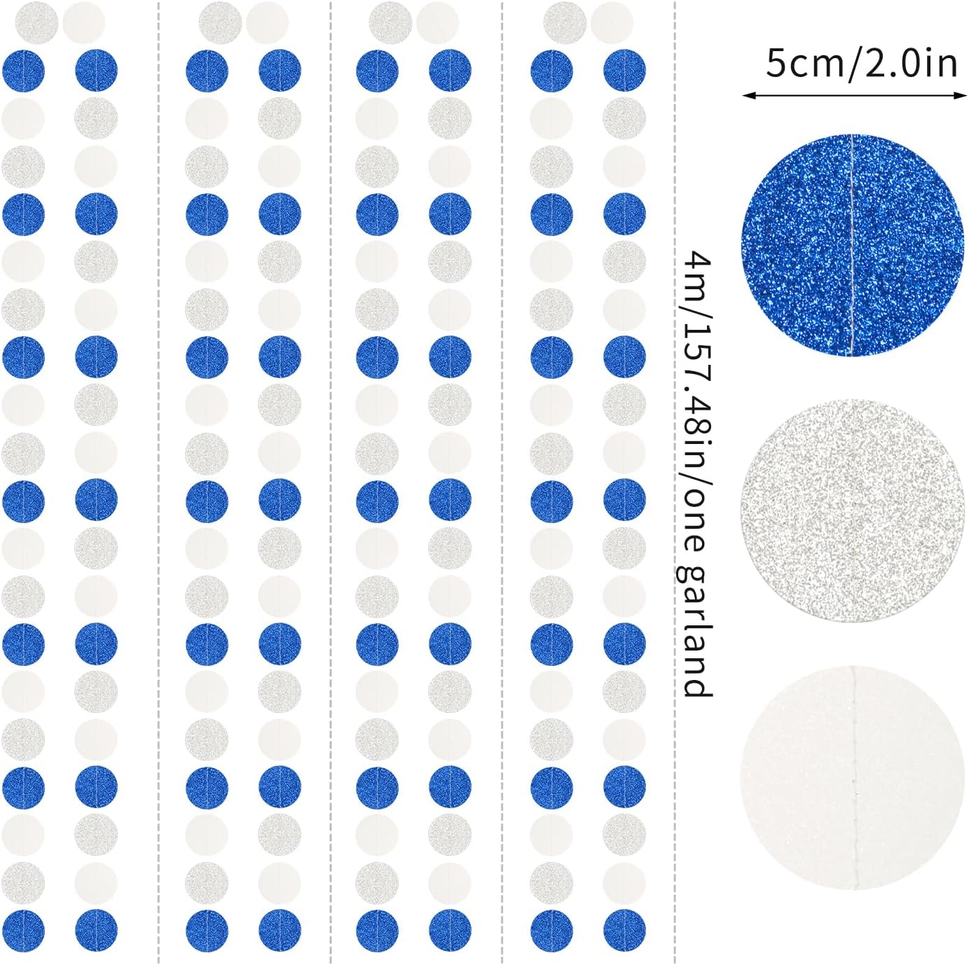 • PACKAGE CONTAINS: This set has four navy blue white silver circle paper garland,the length of each strand is 4 meters/13 feet, the total length is 16 meters/52 feet.The size is 2IN.