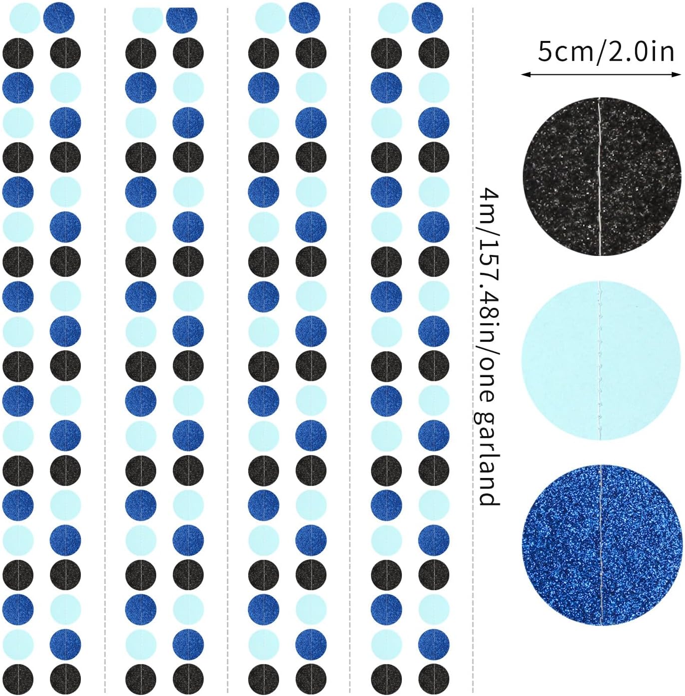 • PACKAGE CONTAINS: This set has four navy blue black circle paper garland,the length of each strand is 4 meters/13 feet, the total length is 16 meters/52 feet.The size is 2IN.