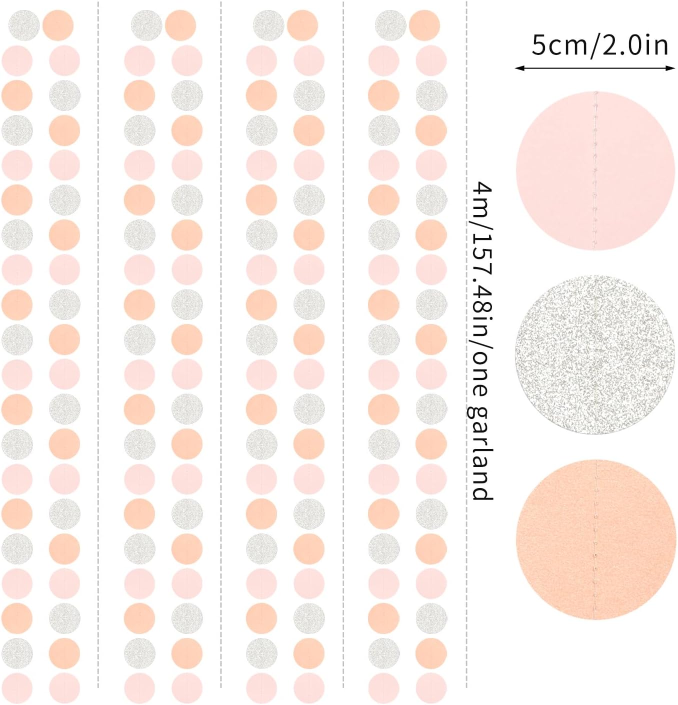 • PACKAGE CONTAINS: This set has four pink silver peach paper circle garland,the length of each strand is 4 meters/13.1 feet, the total length is 16 meters/52.5 feet.The size is 2IN.