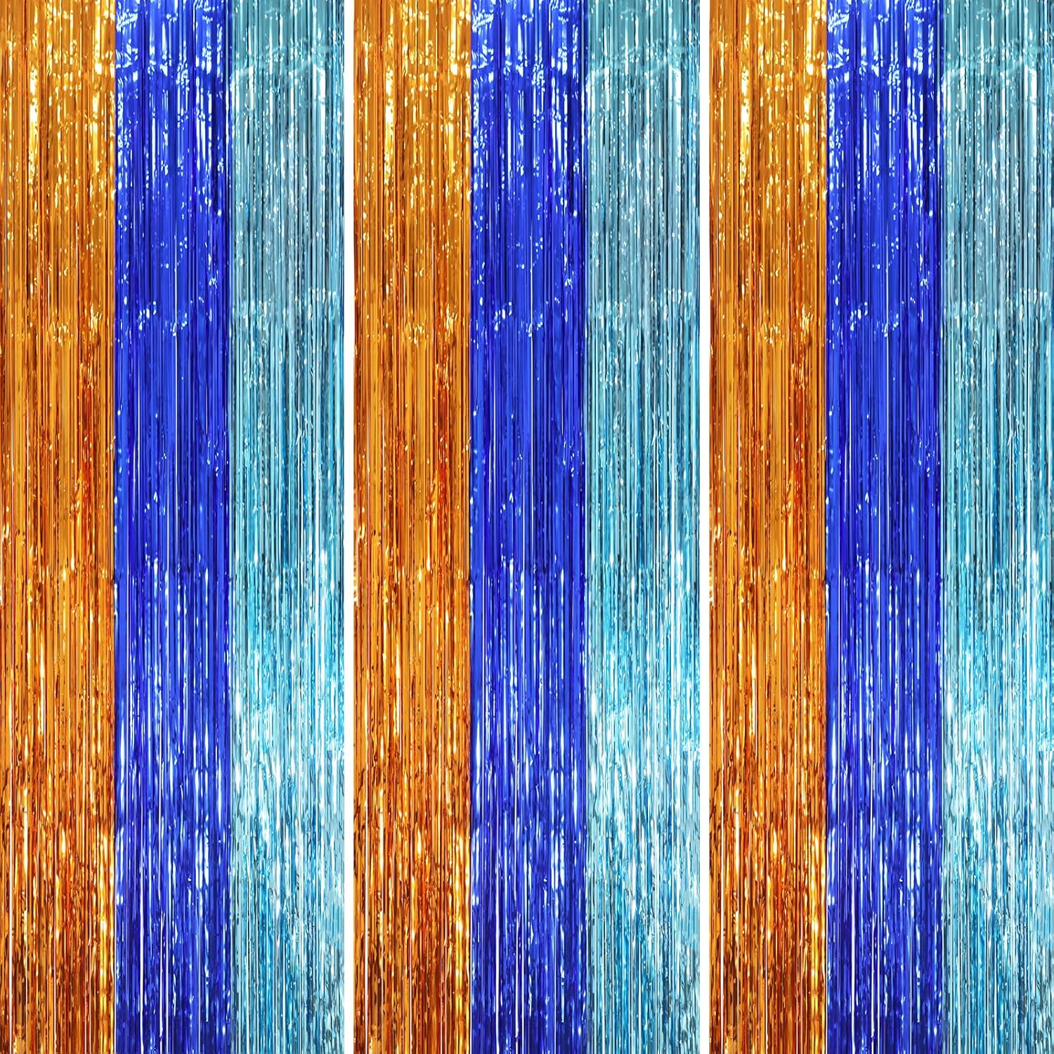 • Package Included: 3 packs of blue orange foil fringe curtains, the size of the foil curtain is 3.3*8.2ft. It's long enough to fit any occasion