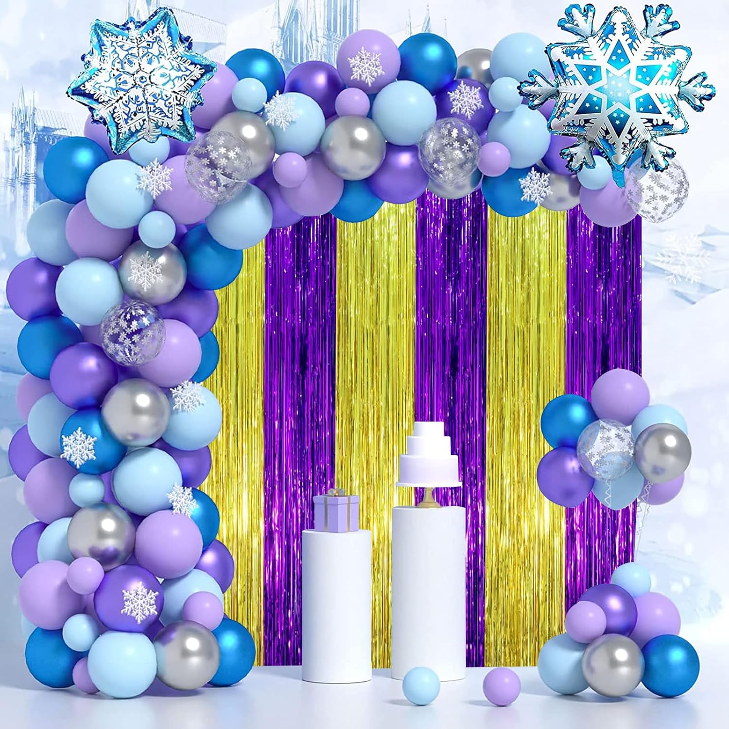• Package Included: 3 packs of purple gold foil fringe curtains, the size of the foil curtain is 3.3*8.2ft. It's long enough to fit any occasion
