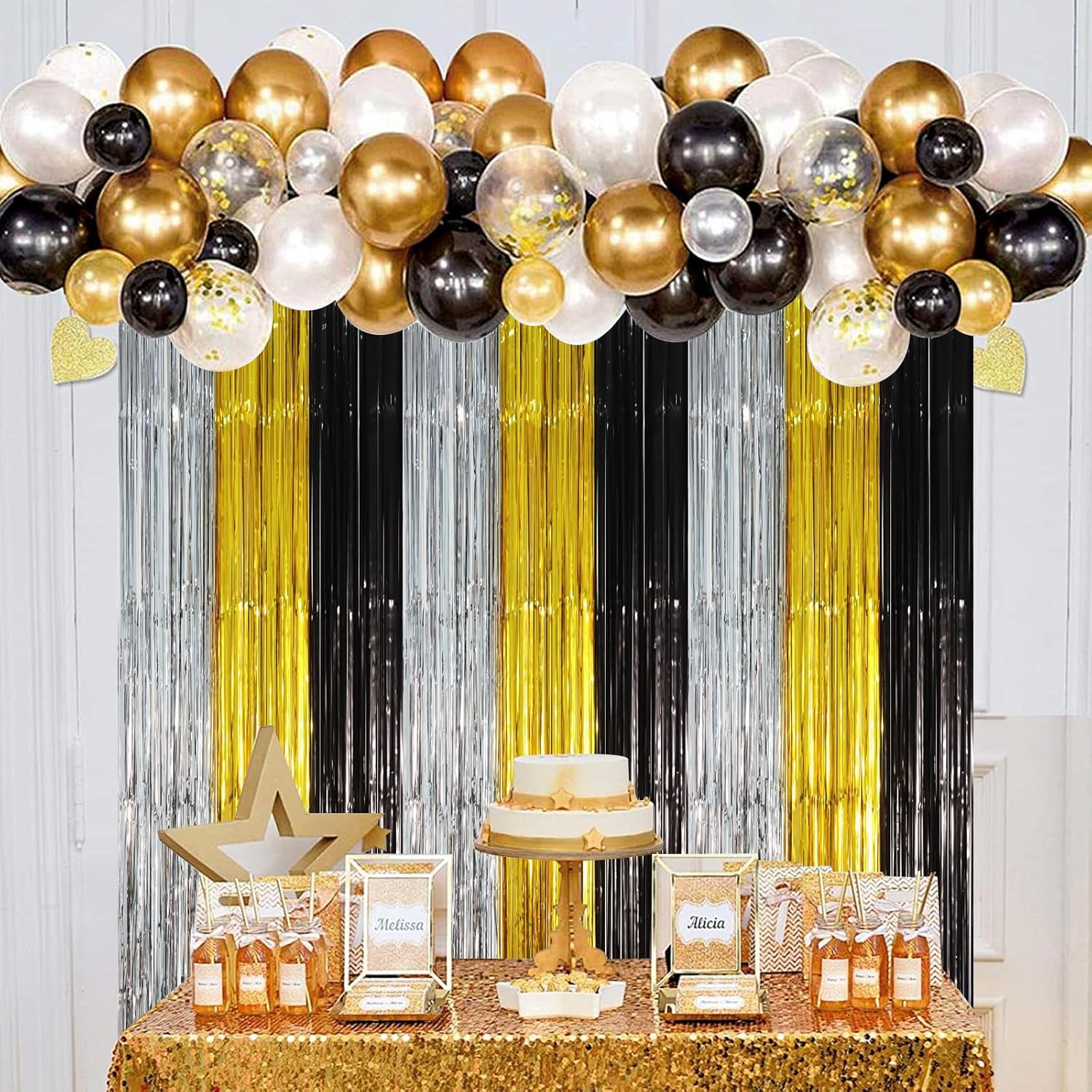 • Widely Applications: This black gold and silver shimmer streamer foil curtain is perfect for New Years