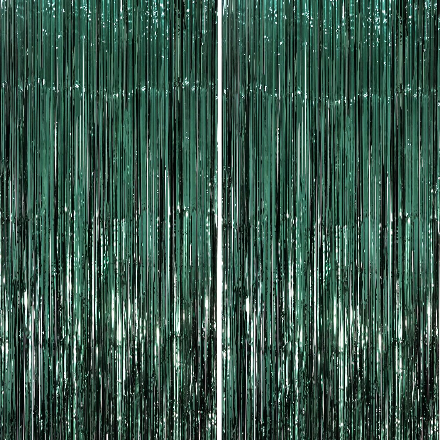 2 Pack Retro Green Foil Fringe Backdrop Curtains, Tinsel Streamers Party Decorations, Fringe Backdrop, Door Shimmer for Christmas