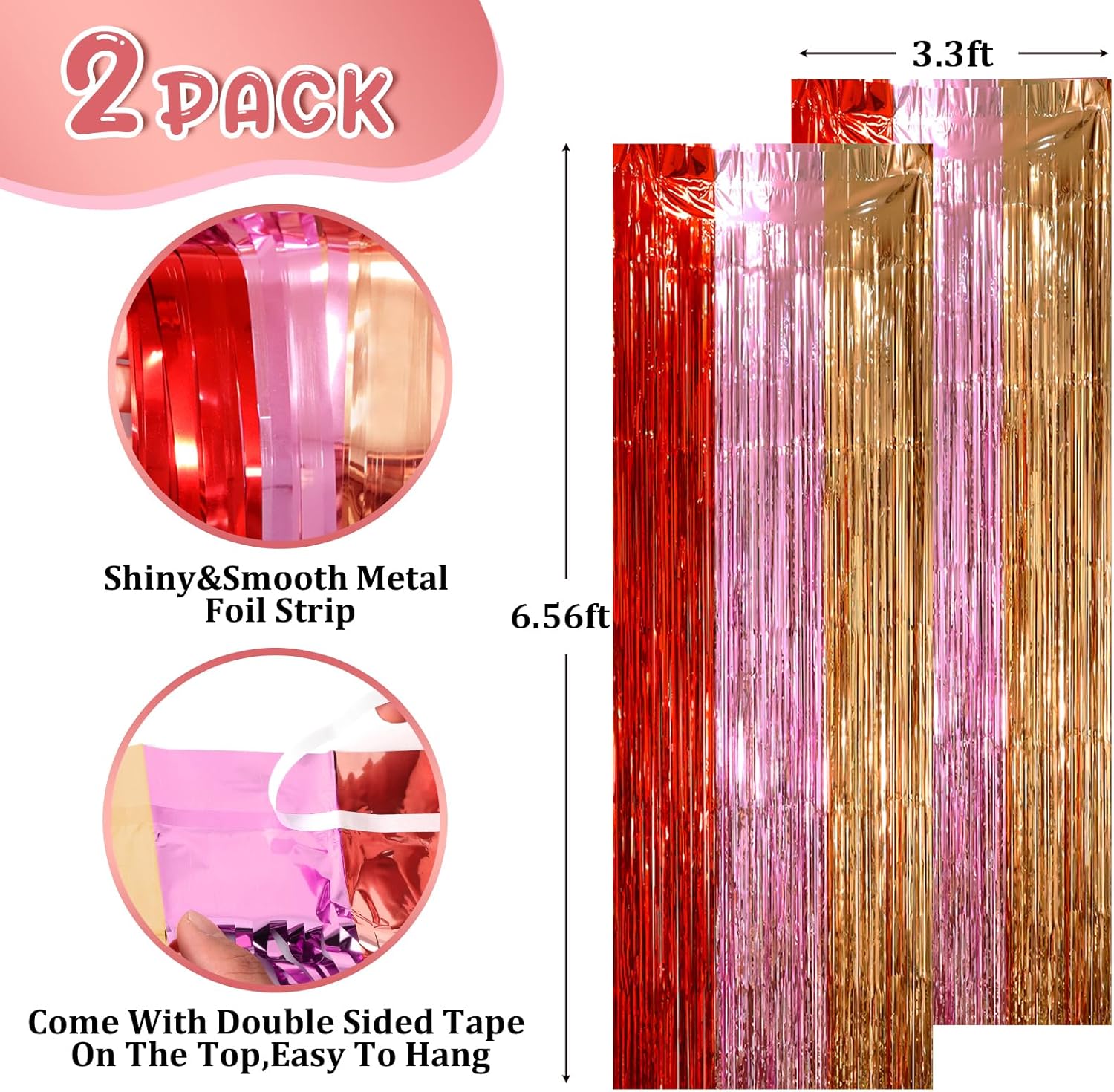 • Widely Applications: This pink rose gold and champion shimmer streamer foil curtain is perfect for Valentine or Birthday for women