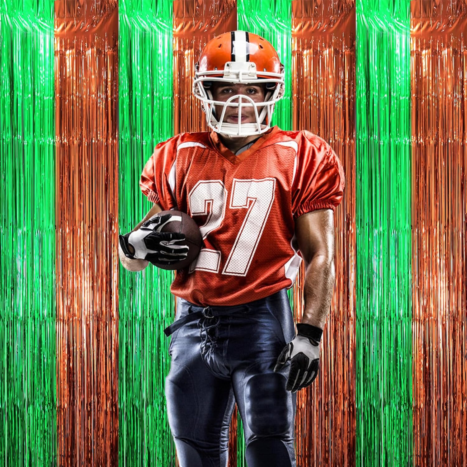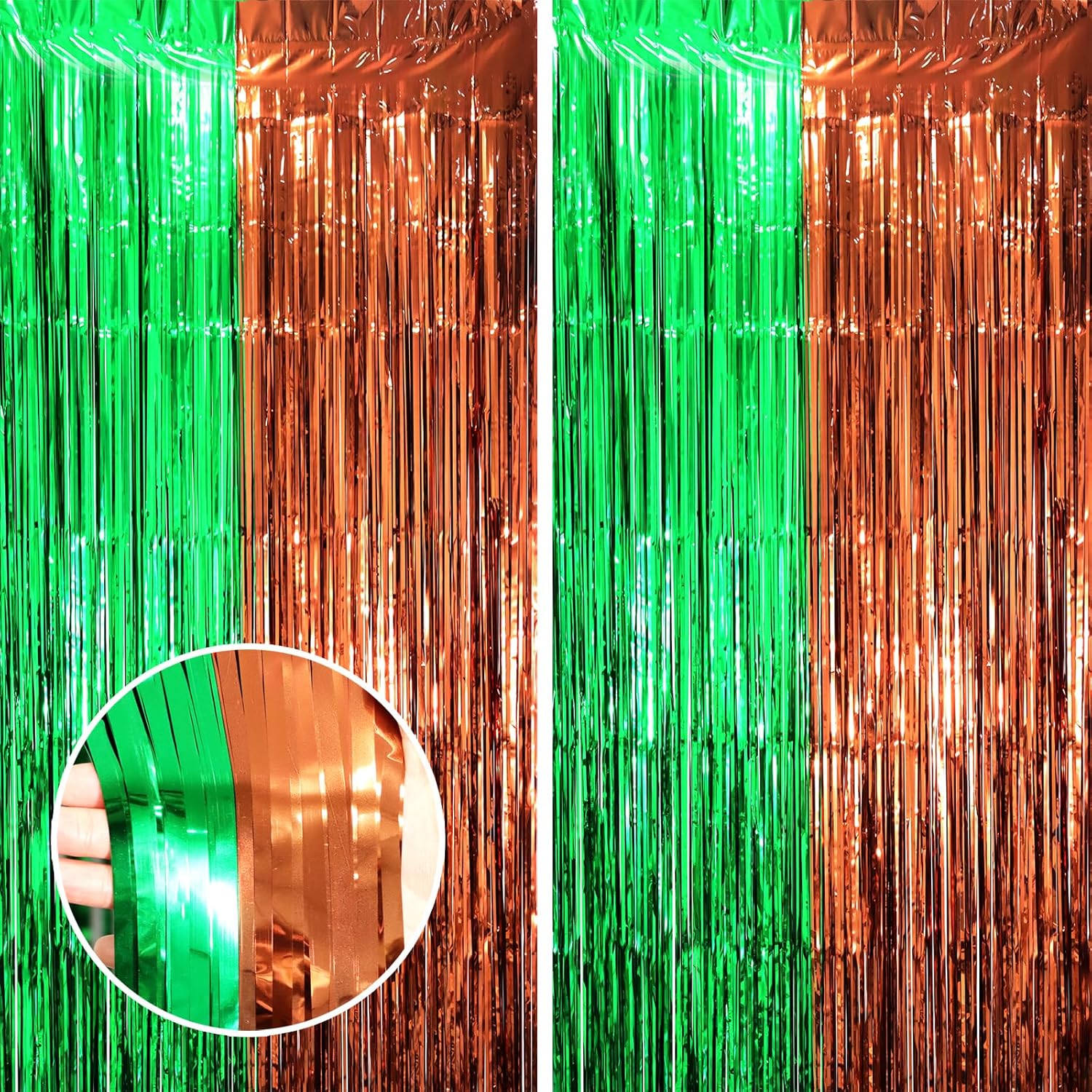 2 Pack Green and Brown Foil Fringe Backdrop Curtains, Tinsel Streamers Party Decorations, Fringe Backdrop, Door Shimmer for Super Bowl or Birthday Party