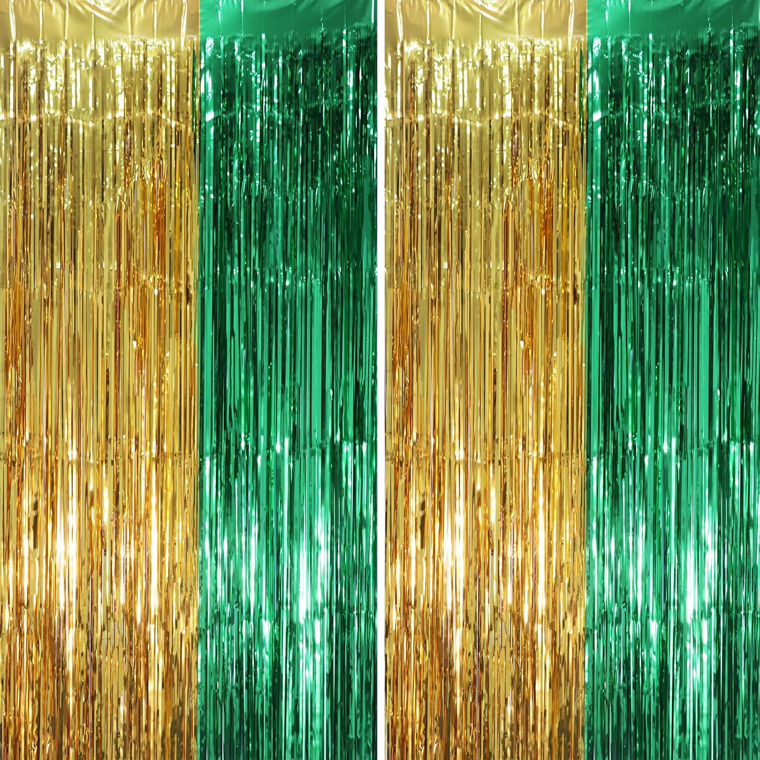 • Stunning Decorative Set: You'll receive 2 pcs gold green foil fringe backdrop curtains, each measuring 3.28 ft (wide)×6.56 ft (drop). Enough length foil fringe curtains backdrops are perfect for the door or wall to create an impressive decoration
