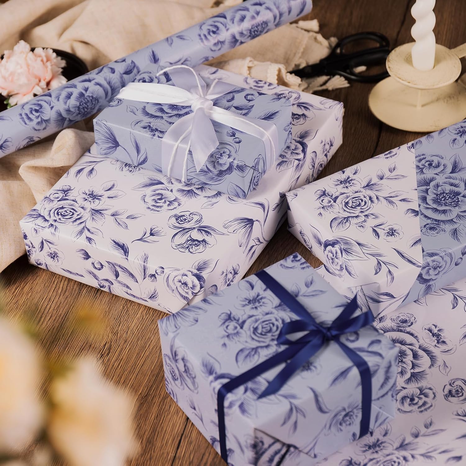 • Elegant Purple Floral: Featuring a beautiful purple floral design, this wrapping paper adds a touch of elegance to your gifts, perfect for any occasion such as birthday, wedding, Mother's day and more.