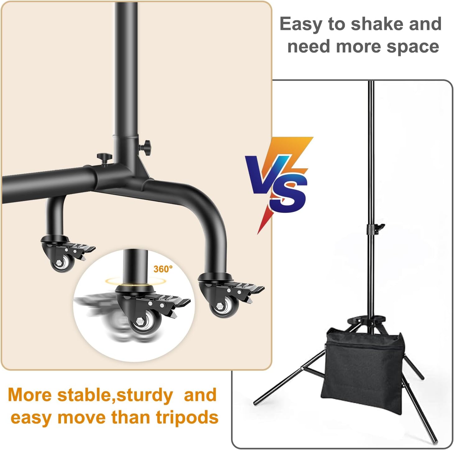 • MORE STABLE WHEELS BASE - Our backdrop stand adds a leveling bar at the bottom with a sturdy wheels base. Compare with normal backdrop stand, it increases the stability of the stand. Therefore, it can carry heavy backgrounds and prevent shaking. The wheels have universal adjustment and shock absorption for easy mobility.