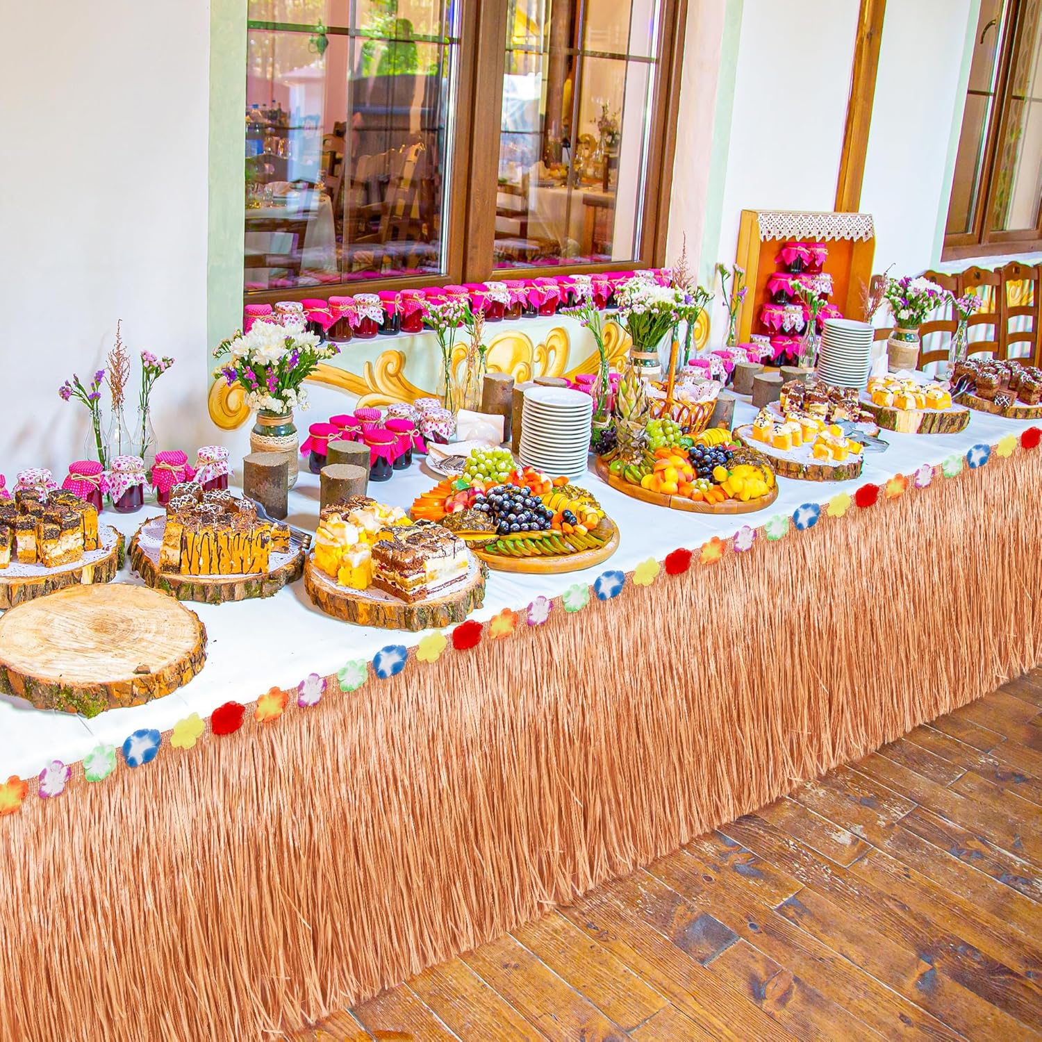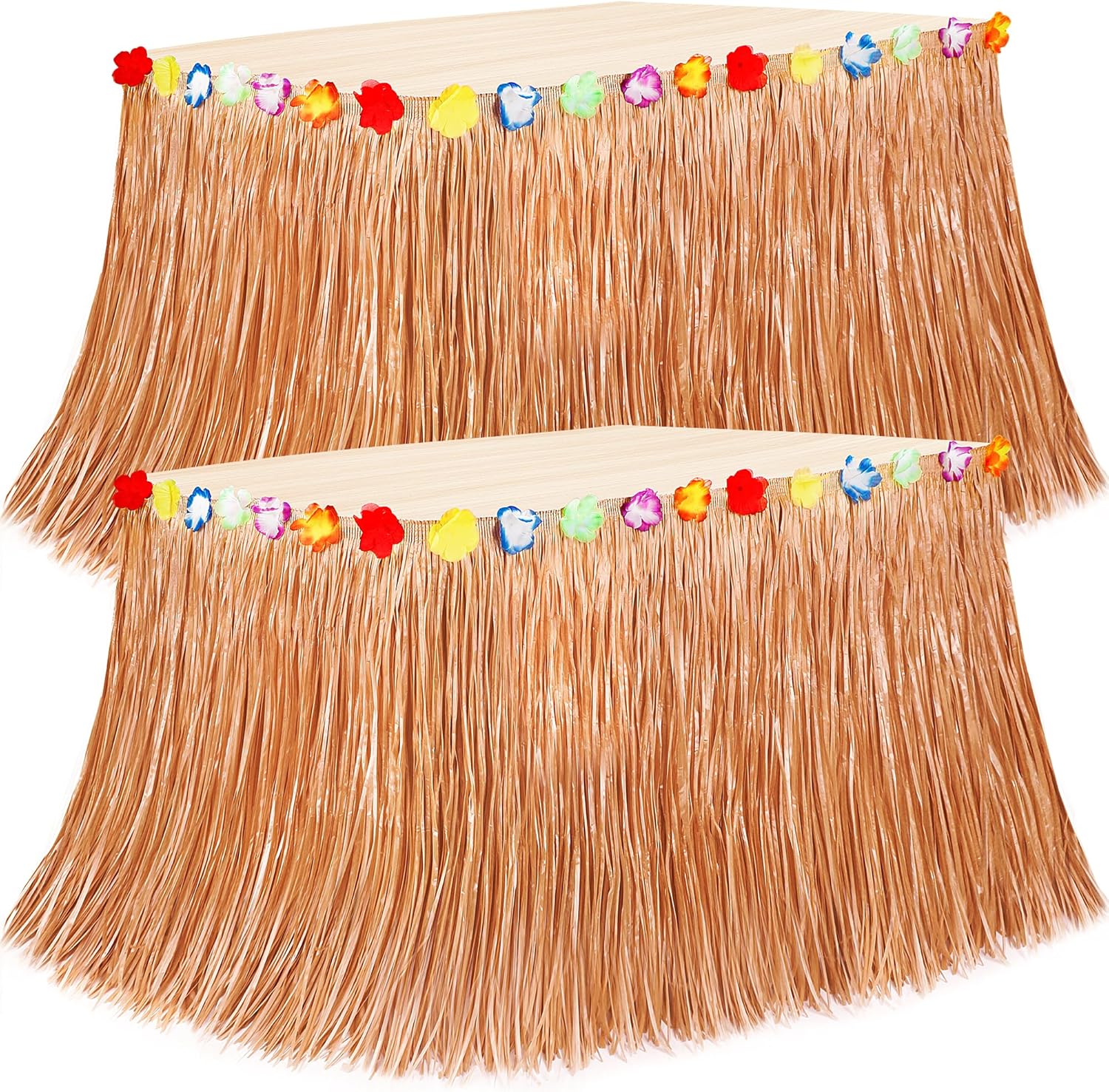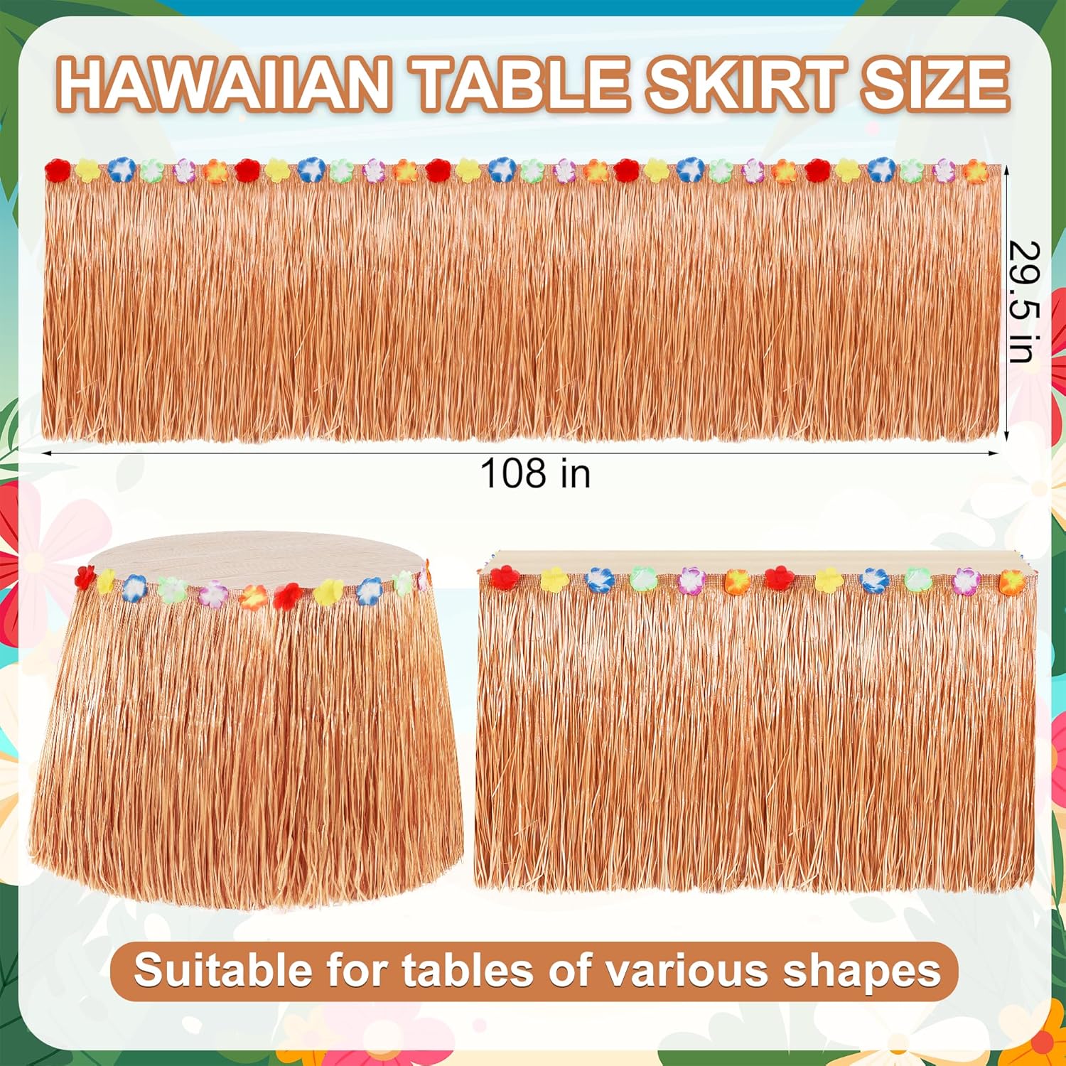 Hawaiian Themed Party Decorations, 2PCS Luau Party Table Skirt Decorations, 108 X 29.5" Table Skirt Flower Tropical Hula Dance Parties Supplies, Grass Table Skirt for Summer Beach Themed Party