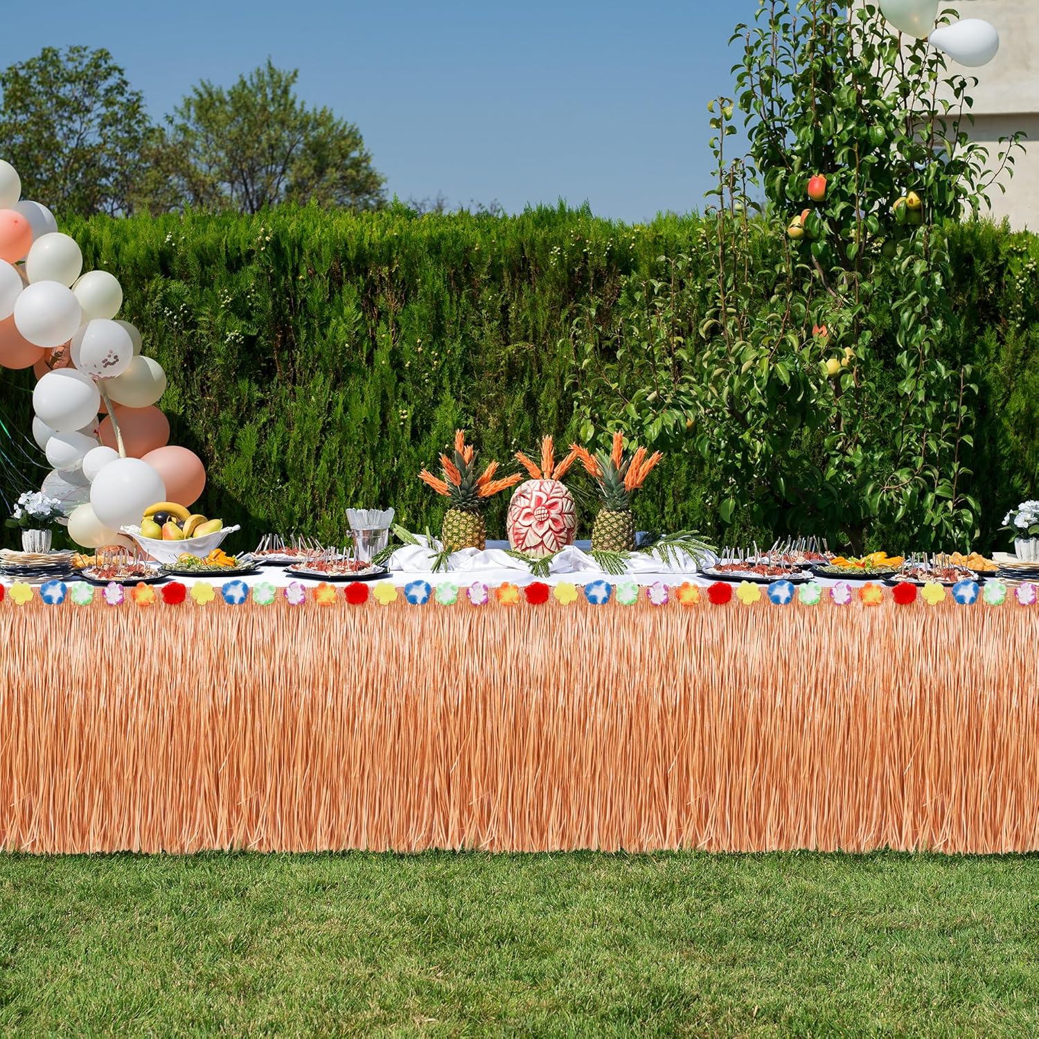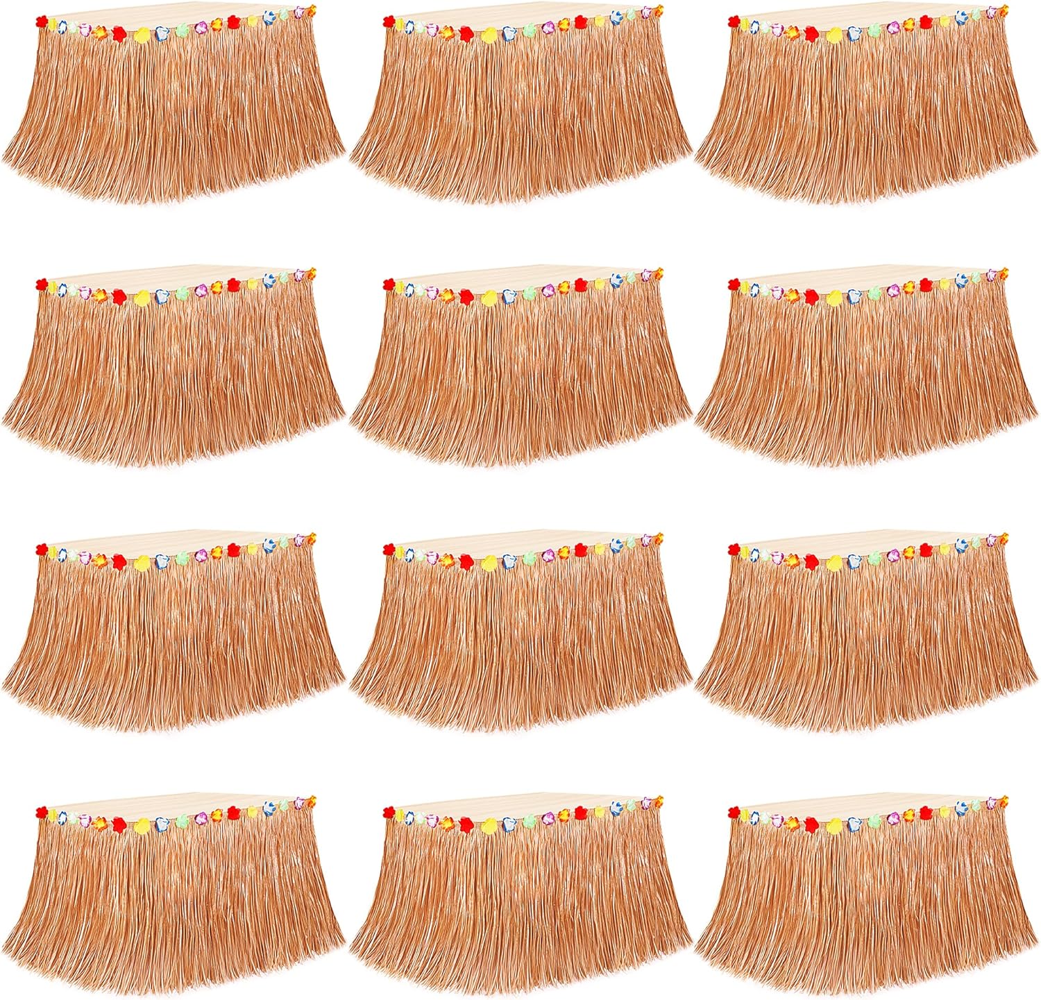 12PCS Hawaiian Table Skirt, Luau Themed Grass Table Skirt Party Supplies, Indoor Outdoor 108 X 29.5" Flower Tropical Hula Dance Parties Supplies Bulk, Table Skirt for Summer Beach Themed Party