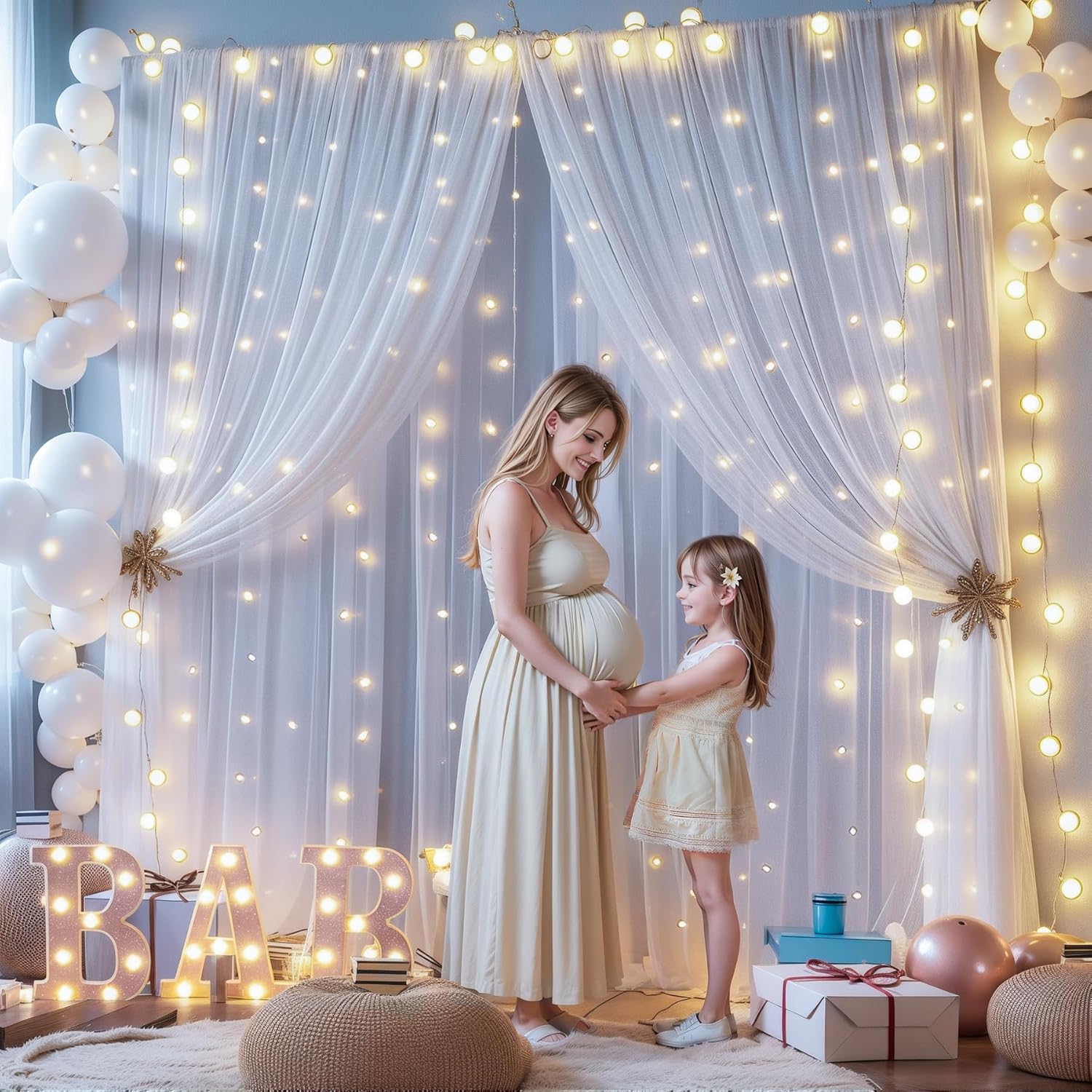 • White Sheer Backdrop Curtain with Lights Occasions: Perfect for weddings, baby showers, bridal showers, birthday parties, anniversaries, New Year celebrations, family gatherings, and other occasions to create a memorable photo backdrop. The tulle backdrop curtains can be reused many times. For a fuller effect, consider purchasing multiple sets to use together