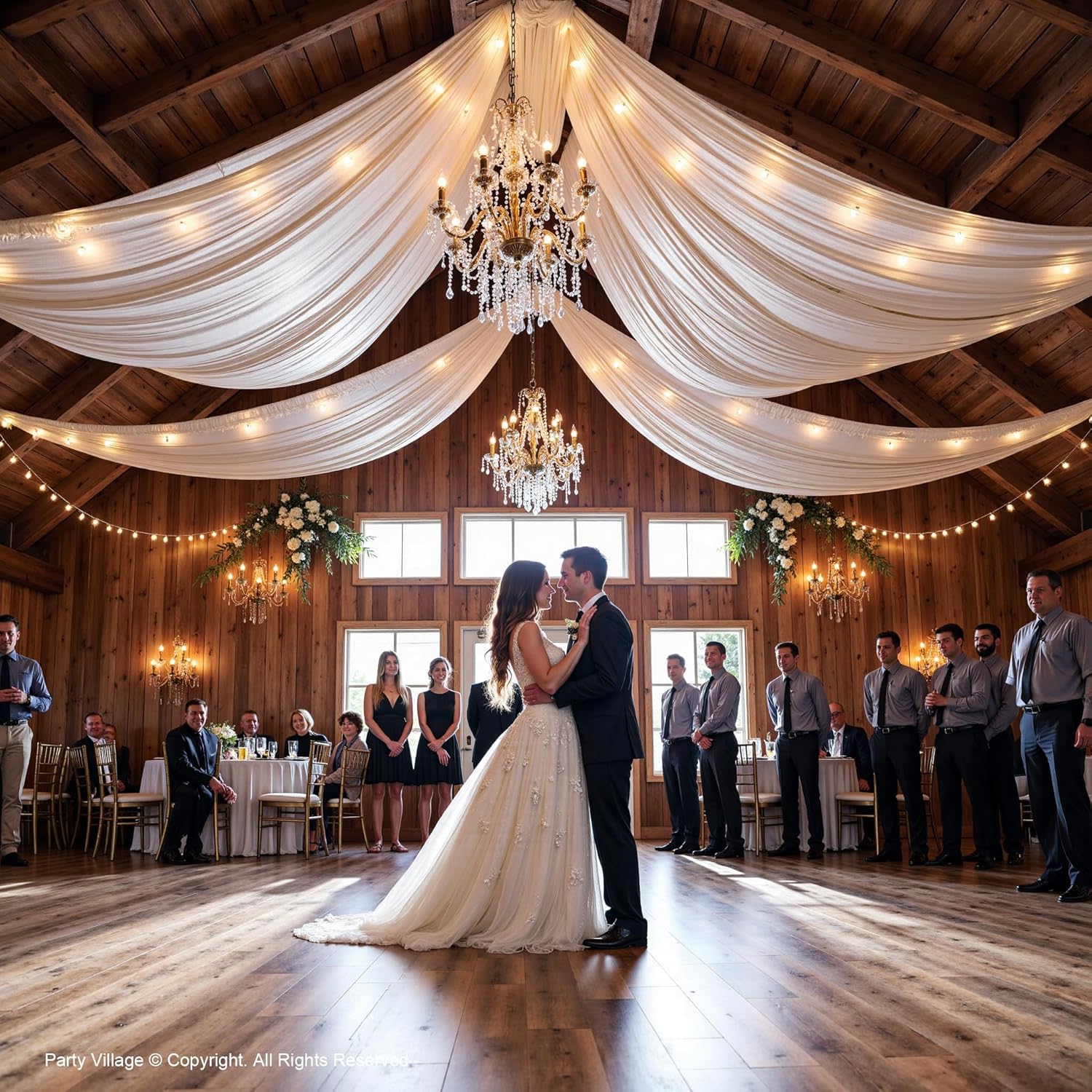 • Extra-Long Brilliance: This draping fabric, with its expansive 40ft Length, allows for grand and luxurious draping panels, making it an ideal choice for creating stunning backdrops, ceiling decor and tent draping that captivate attention.