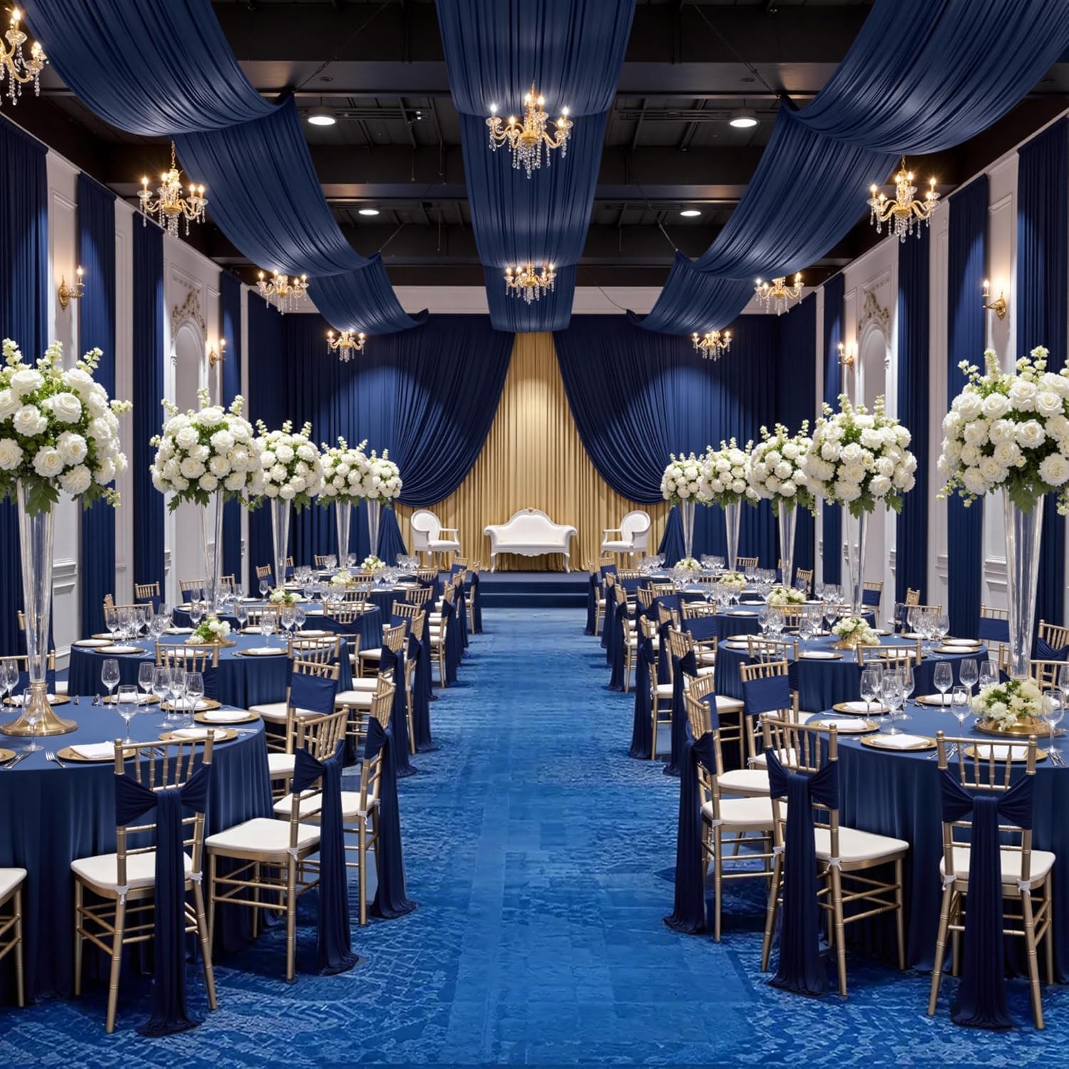 • 💐【Navy Blue Ceiling Drapes】The package will include 2 panels Navy Blue wedding drape curtain(without hanging pieces), each wedding extra long curtain measures 5 feet (60inch)wide x30 feet(360inch) long.The sufficient quantity can meet your demands for decorating your weddings, parties, receptions, and these Navy Blue ceiling drapes will create a delicate and aesthetic sense to your wedding ceiling decoration and light up every banquet.