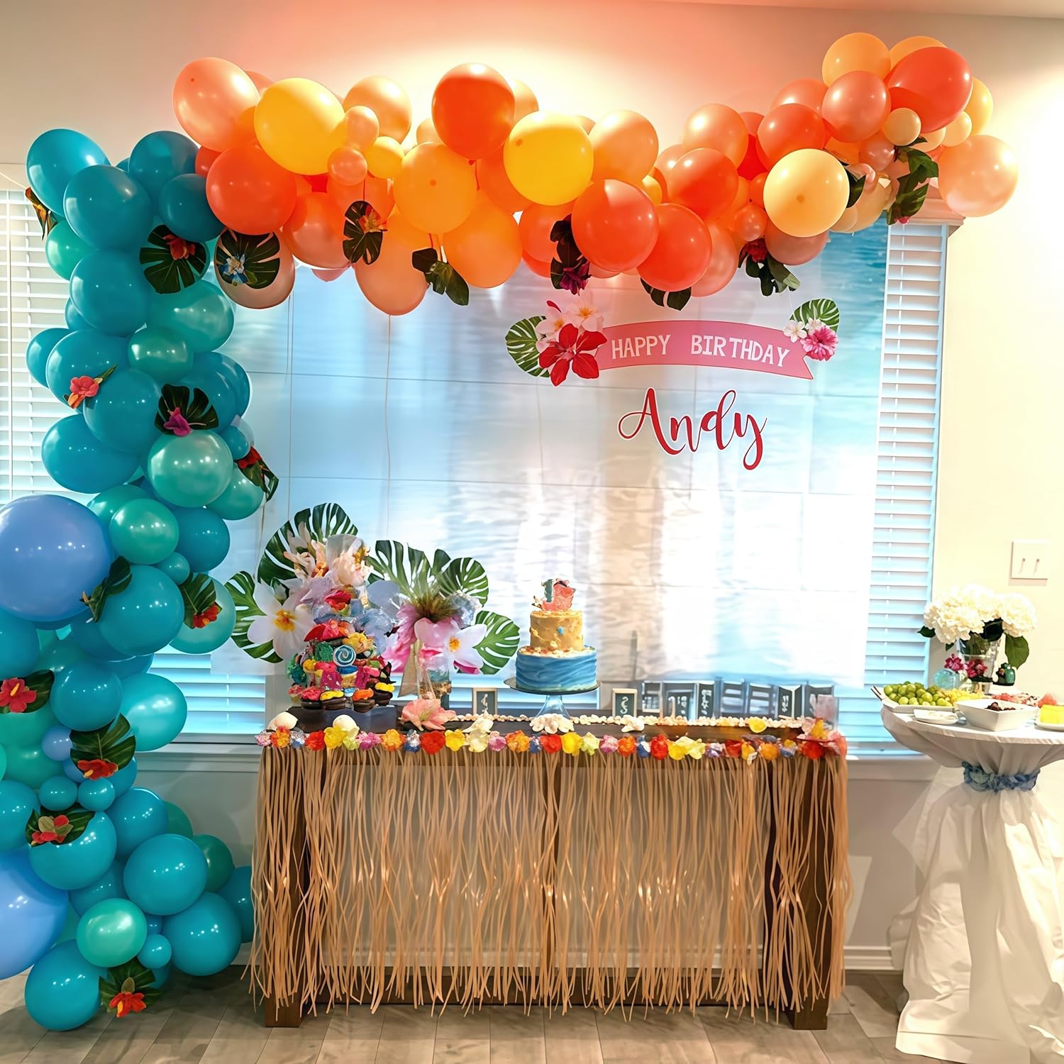 Hawaiian Balloons Set, Pack of 60 12 Inch Orange Teal Blue Light Green Chrome Rose Gold Confetti Latex Balloons for Tropical Luau Beach Aloha Tiki Magic Baby Shower Birthday Party Decorations Supplies
