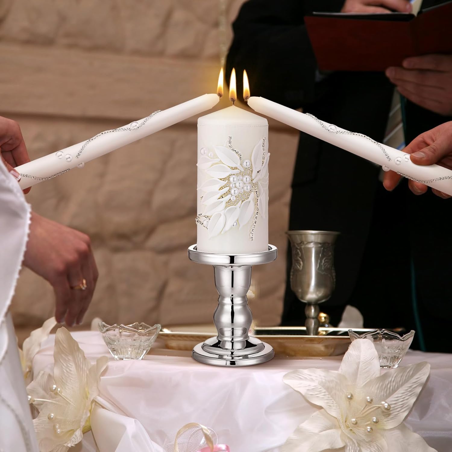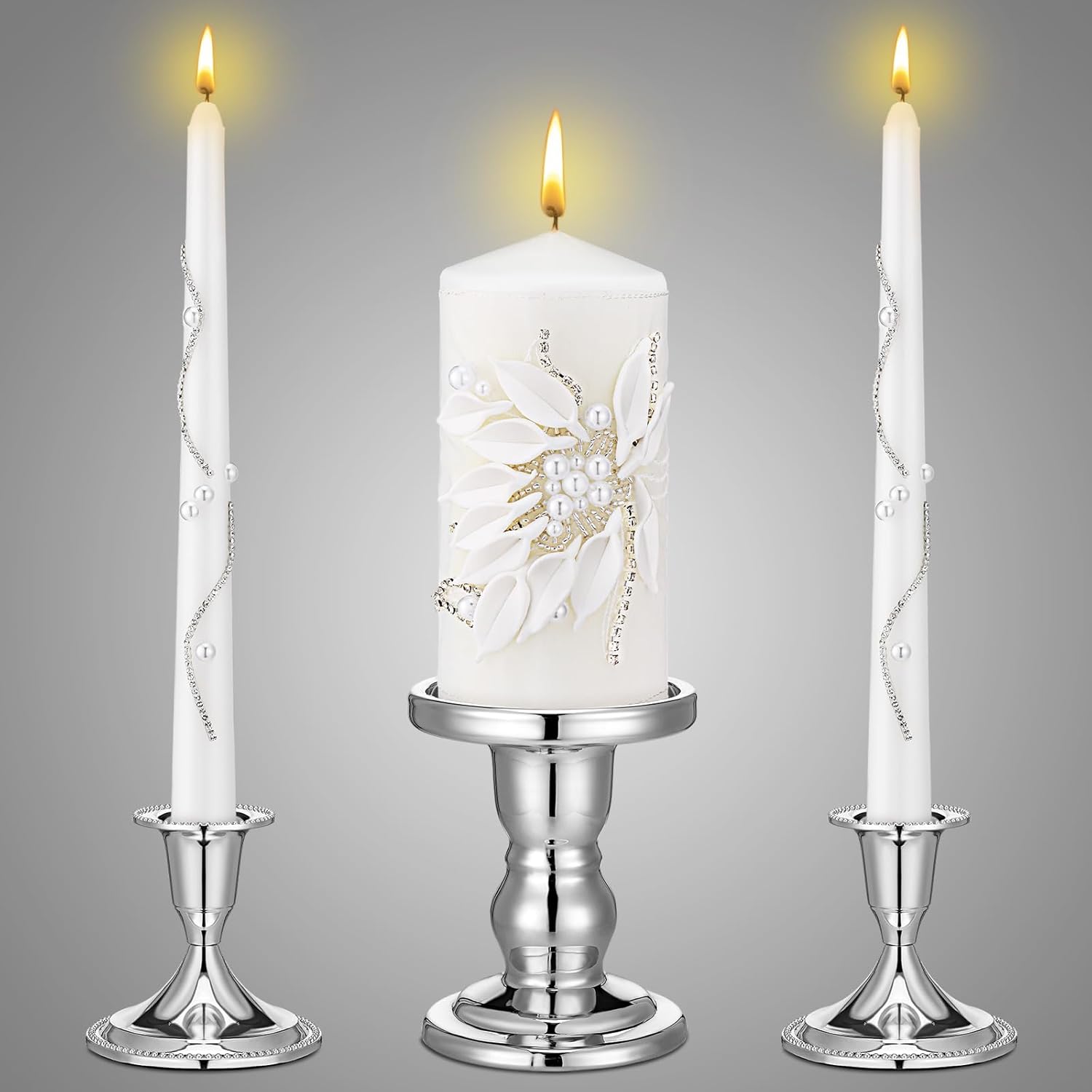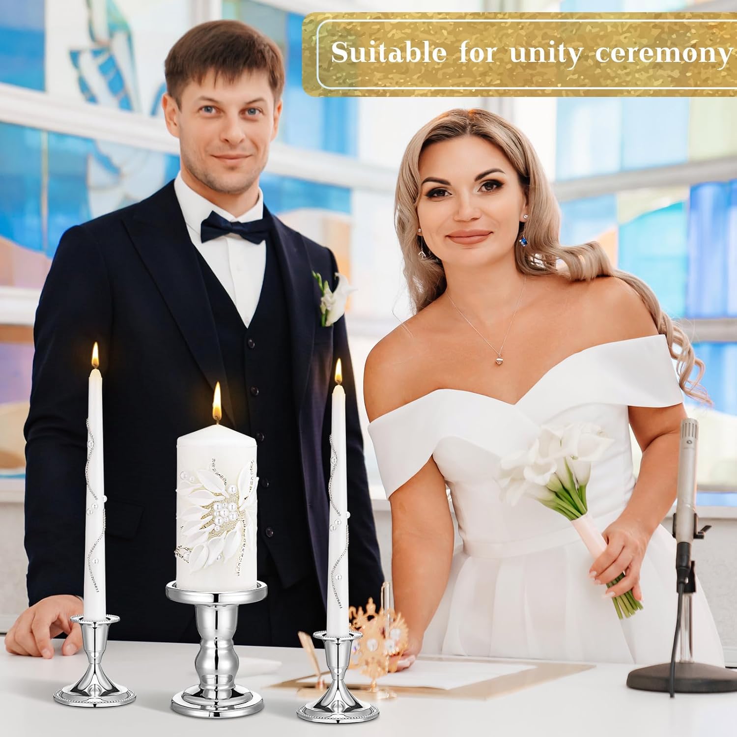 • What You Will Receive: package includes 1 set/ 3 pieces of unity candles and 3 pieces of silver candle holders for pillar candles, which are well matched to decorate the table and party with a romantic atmosphere; They are well packed to ensure a safe arrival