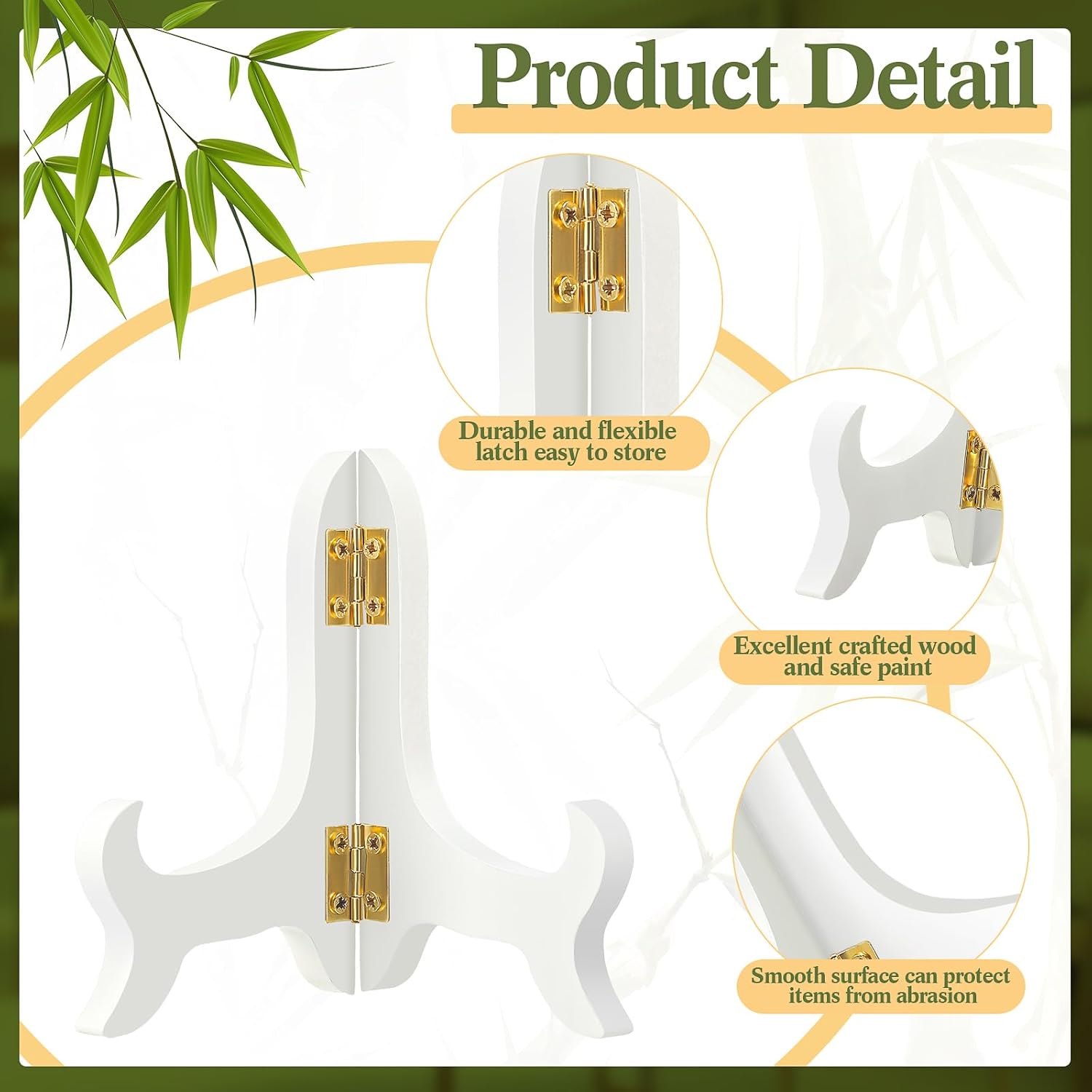 • Solid material: the wooden display easel is made of excellent crafted wood, painted white with gold latch; Solid construction, stable and sturdy; Contoured edges and hinges to fold flat for easy to store