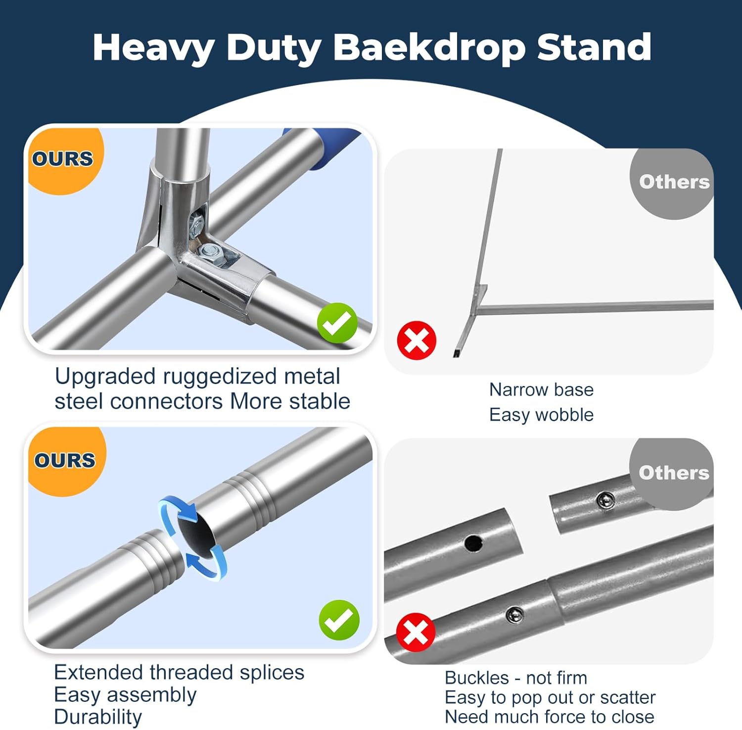 • ✅ Sturdy & Stable Design - Reinforced wide-leg base and thickened metal tubes ensure maximum stability, supporting heavy backdrops, floral arrangements, and lighting without wobbling.
