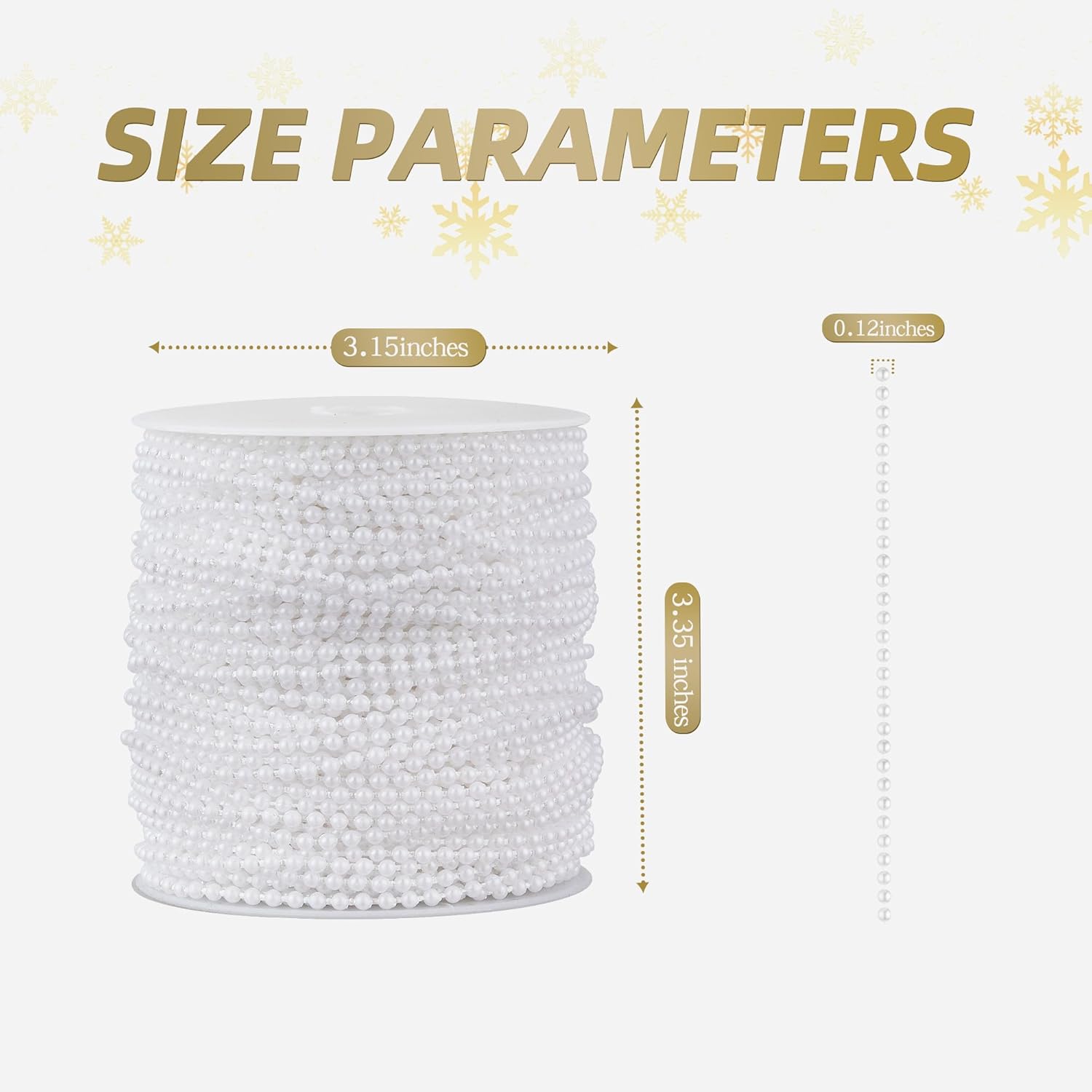 ZPEXRV164 Feet Faux Pearl Beads Garland 3mm Craft String Pearls for Wedding Centerpiece Christmas Tree and Flowers Decoration DIY(White)