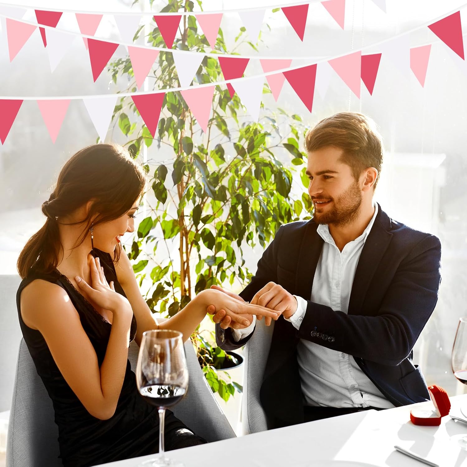 • Eye-Catching Design: The triangle flags create a festive and celebratory atmosphere with their bright pink color and pennant shape.