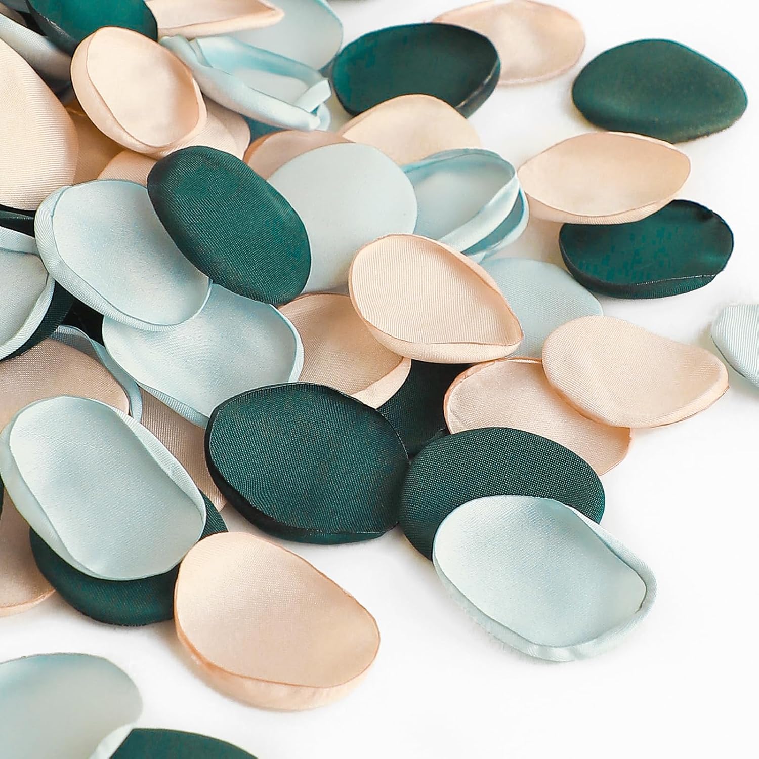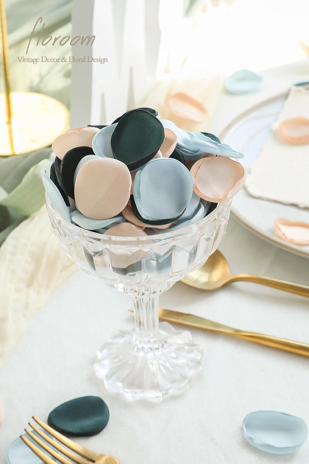 Floroom 300pcs Rose Petals Emerald Green Champagne Faux Silk Flower Petals for Wedding Flower Girl Basket Aisle Scatter Dinner Table Centerpieces Party Confetti Bridal Shower Romantic Night Decoration