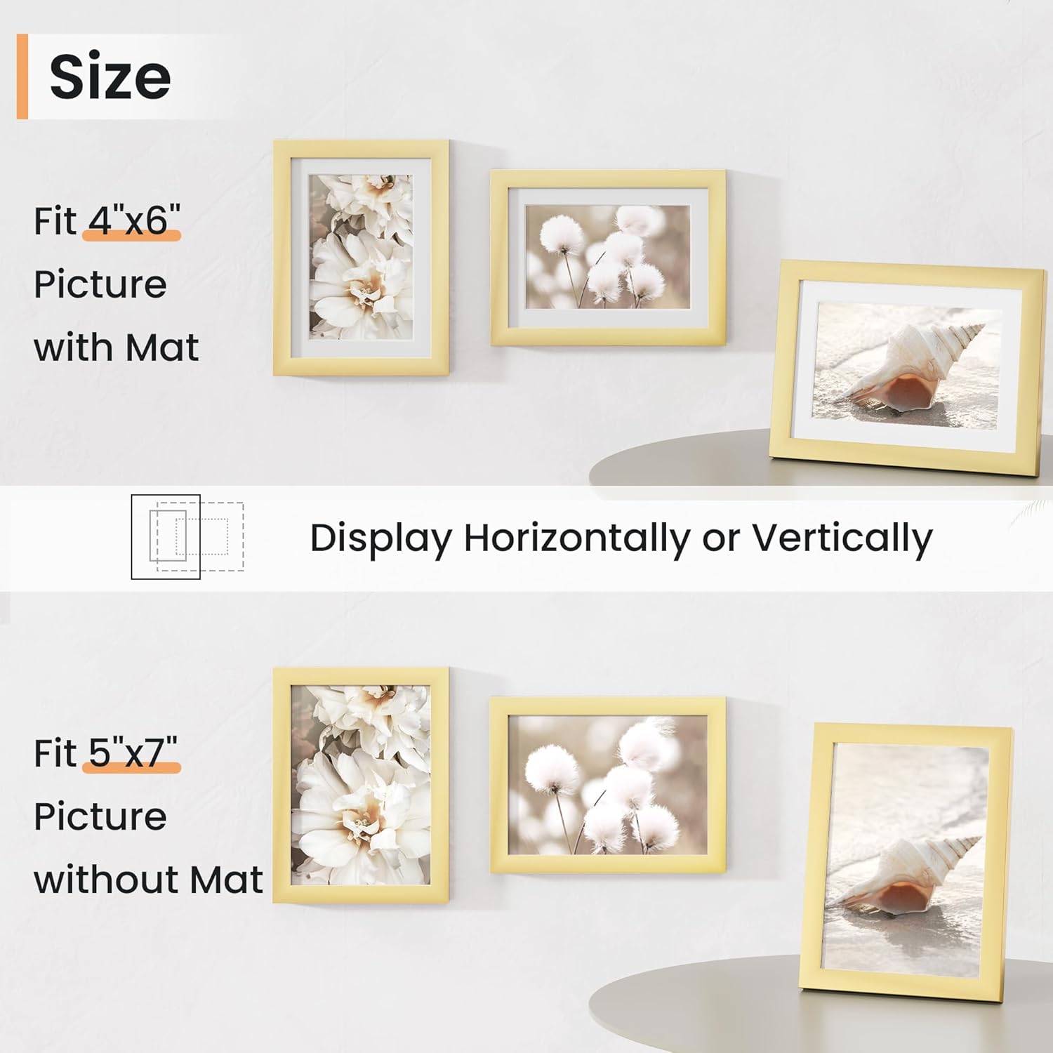 5x7 inch Picture Frame, 5x7 Photo Frames with 4x6 Removable Mat - High Definition Plexiglass - Vertical and Horizontal Display - Wall Hanging Frame - Gold, 3 Pack