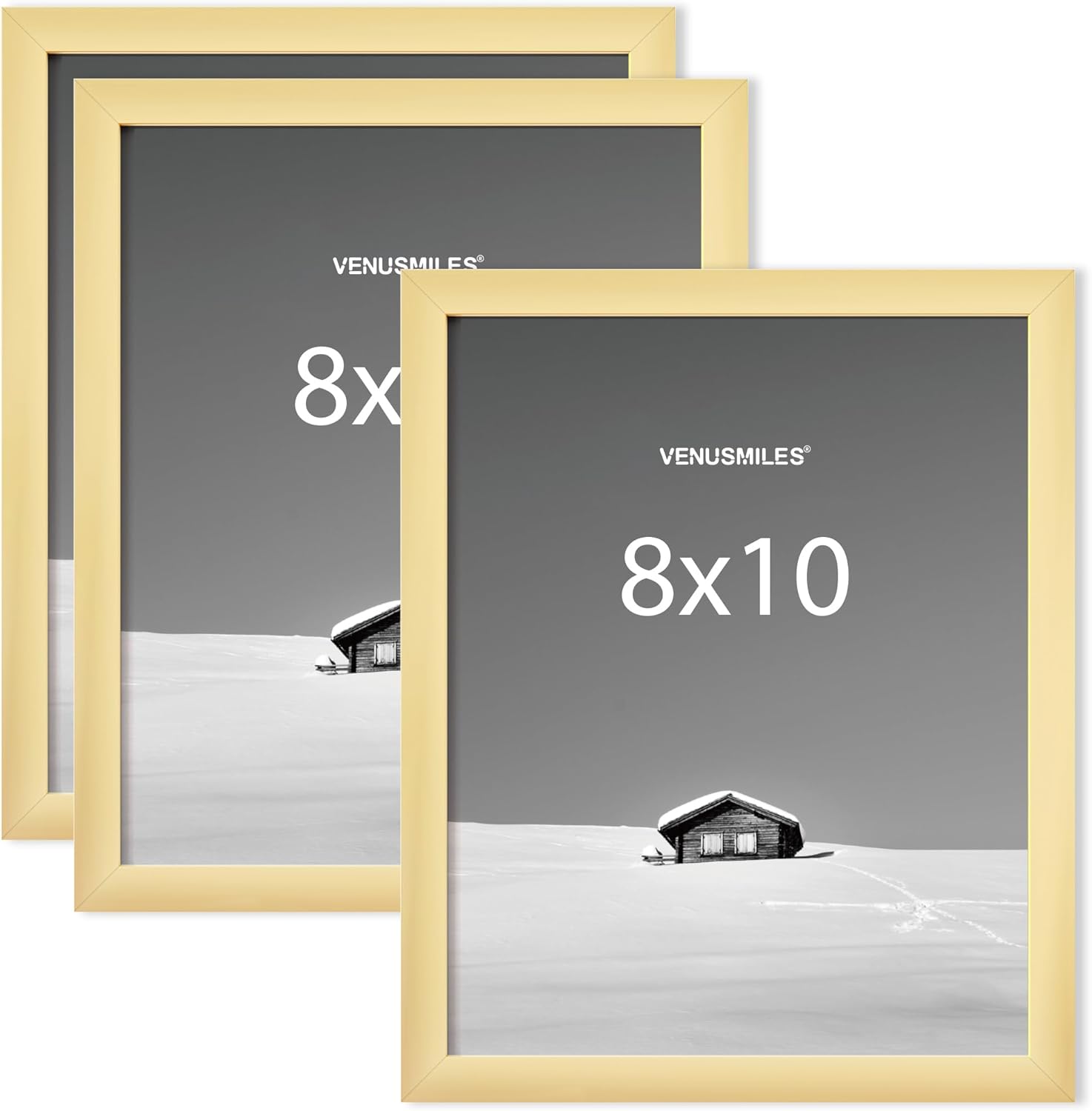 8x10 Picture Frame, Display 8x10 Photo Frames - High Definition Plexiglass - Vertical and Horizontal Display - Wall Hanging or Table Top Frame - Gold, 3 Pack