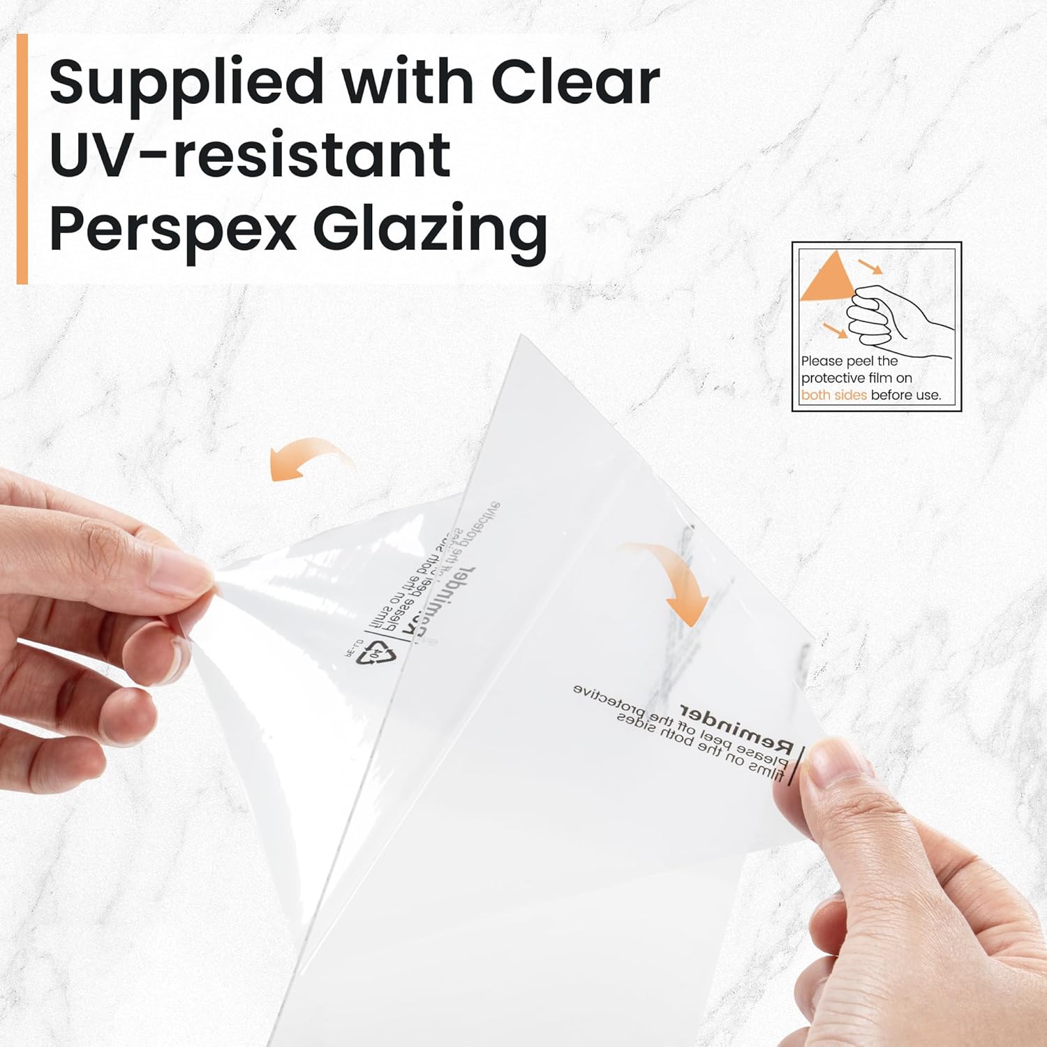 • High-Quality: Our 18x24 picture frame is made of environmentally friendly plastic, strong and durable. With a moisture-proof backplane design, the angle is hand-polished to stop scratching your skin. Use a polished polycarbonate board front to see your photos clearly.