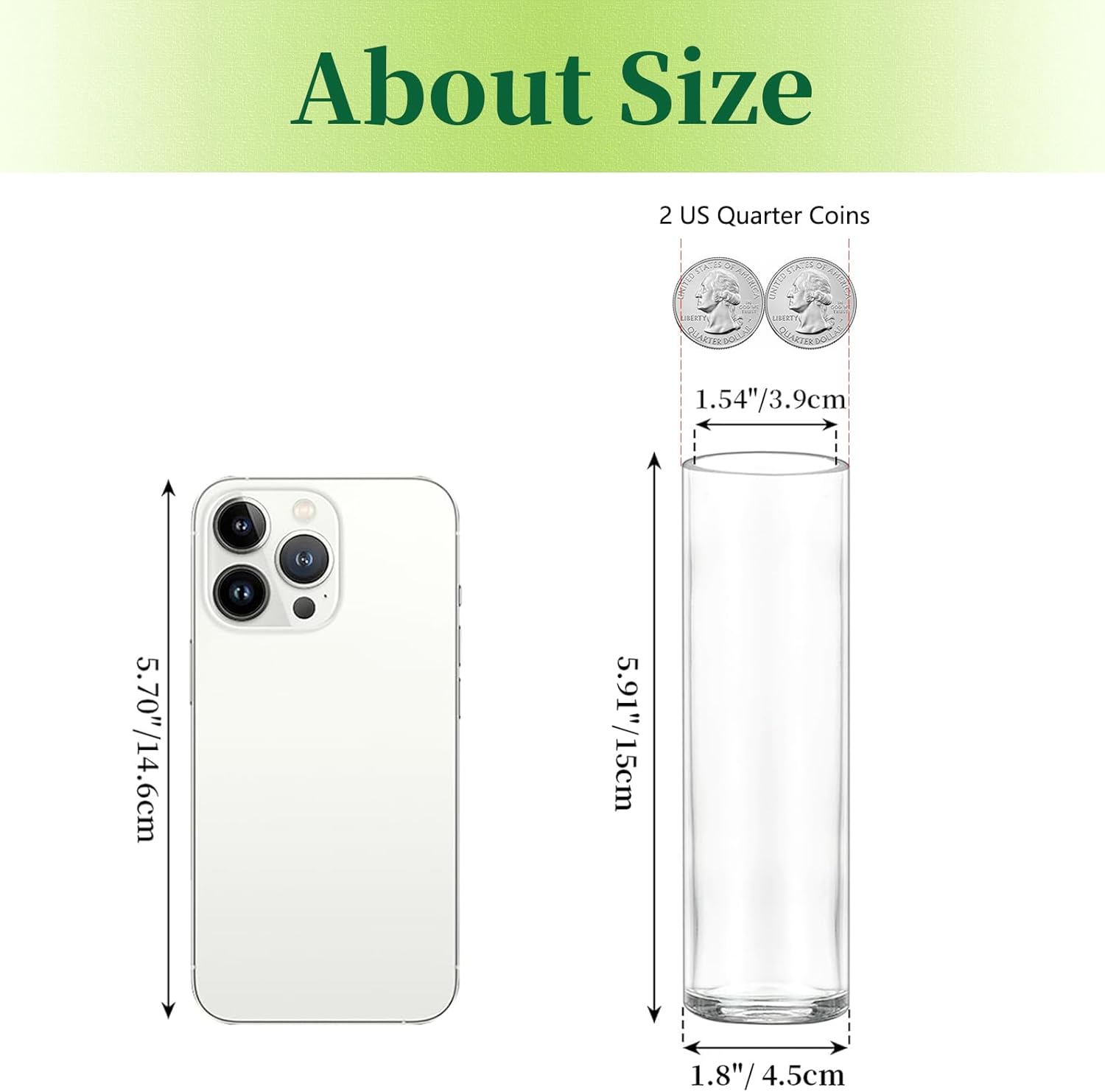 • 【Stable and Durable】: This clear small vase for flowers is made of thick and premium quality glass that offers high clarity and transparency, allowing you to effortlessly appreciate the beauty of the stems. The stable thick bottom makes the cylinder glass bud vase won't tip over easily.