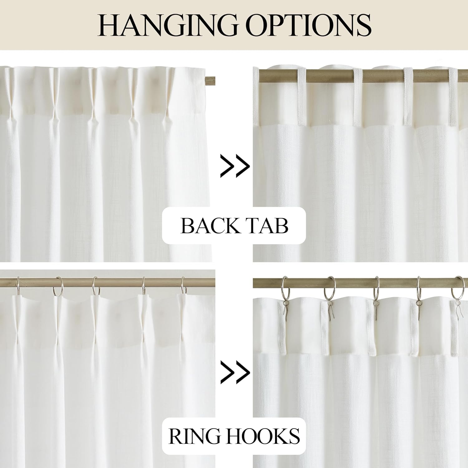 • Pinch Pleats Design:Each white curtain panel with 14 pinch pleats generates modern and luxury feel.Hanging these pinch pleat curtains to elevate your windows and increase the aesthetic value to any spaces,bedroom,living room,nursery,office,patio sliding door,high ceiling,etc.