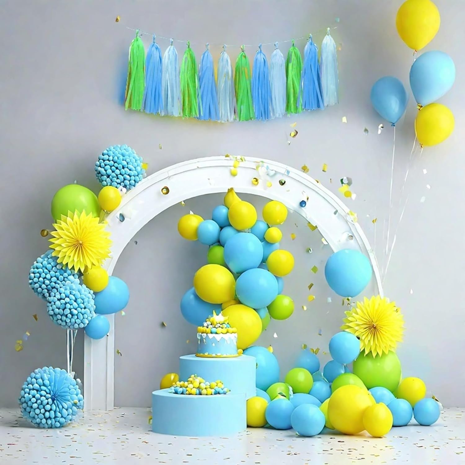 Blue Light Blue and Green Tassel Garland Banner Paper Tassels for Party Decorations,Pack of 15