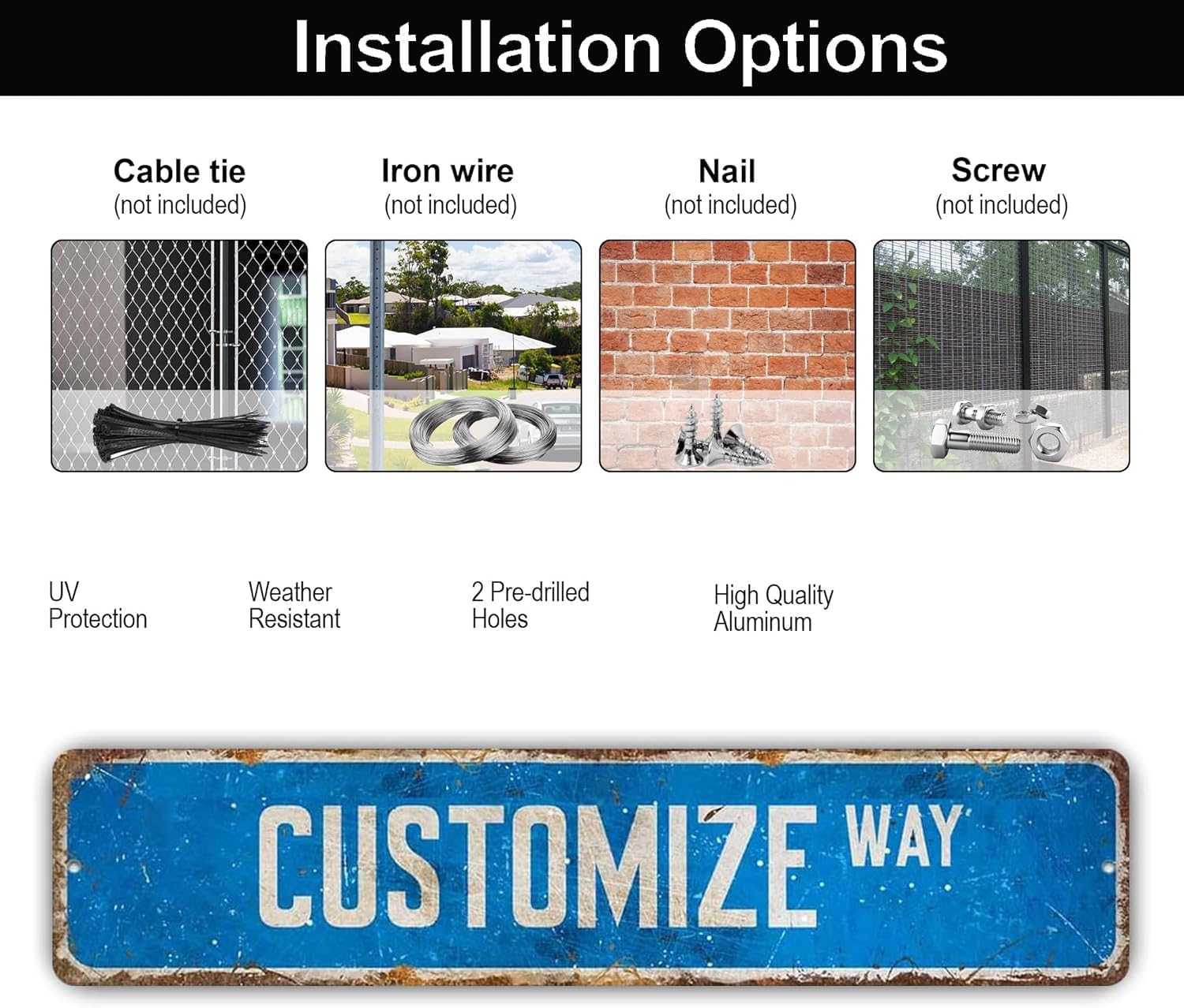 • DURABLE ALUMINUM: Custom Street Sign is made from heavy-duty, 40 mil thick aluminum. Unlike steel signs, our aluminum signs do not rust. Signs last up to several years outside.