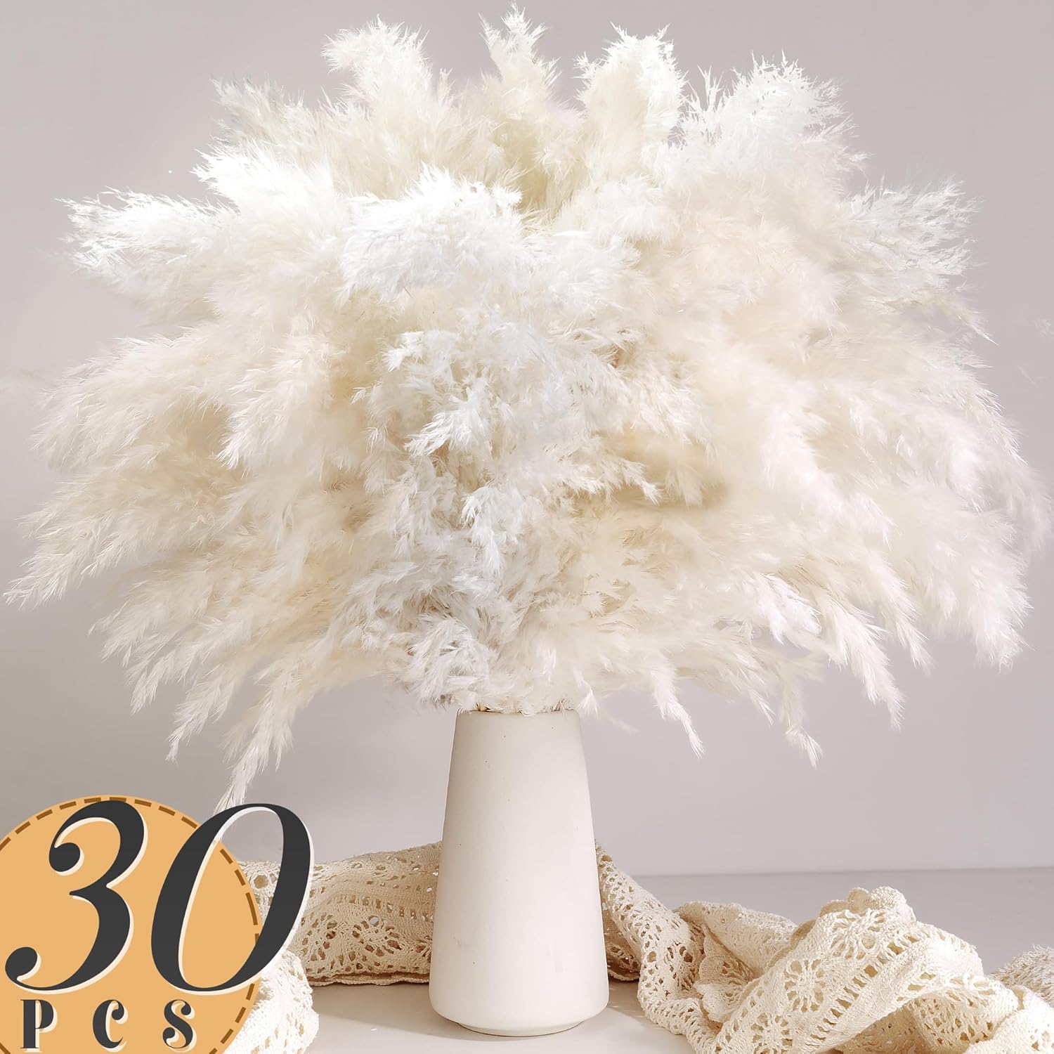 • 30 PCS White Pampas Grass for Home Decor - Elegant Boho Decor - Premium Quality Pampas Grass Stems - Perfect for House, Nursery, Western, Wedding, Table, and Bohemian Decor