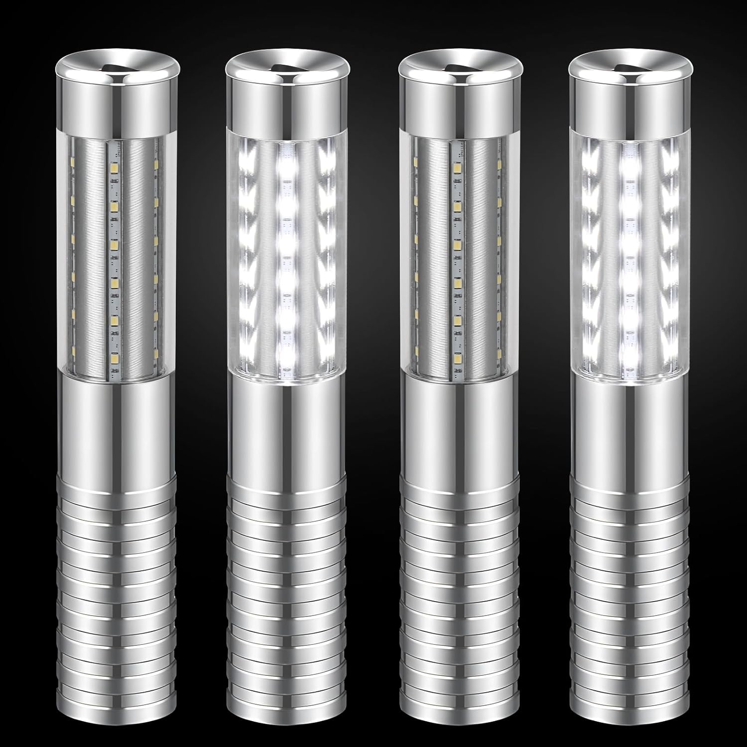 4 Pieces LED Strobe Baton Light Rechargeable Bottle Service Sparklers Stick Reusable Champagne Bottle Handheld LED for Club Stage Nightclub Party Concert Event Bar Outdoor - Silver