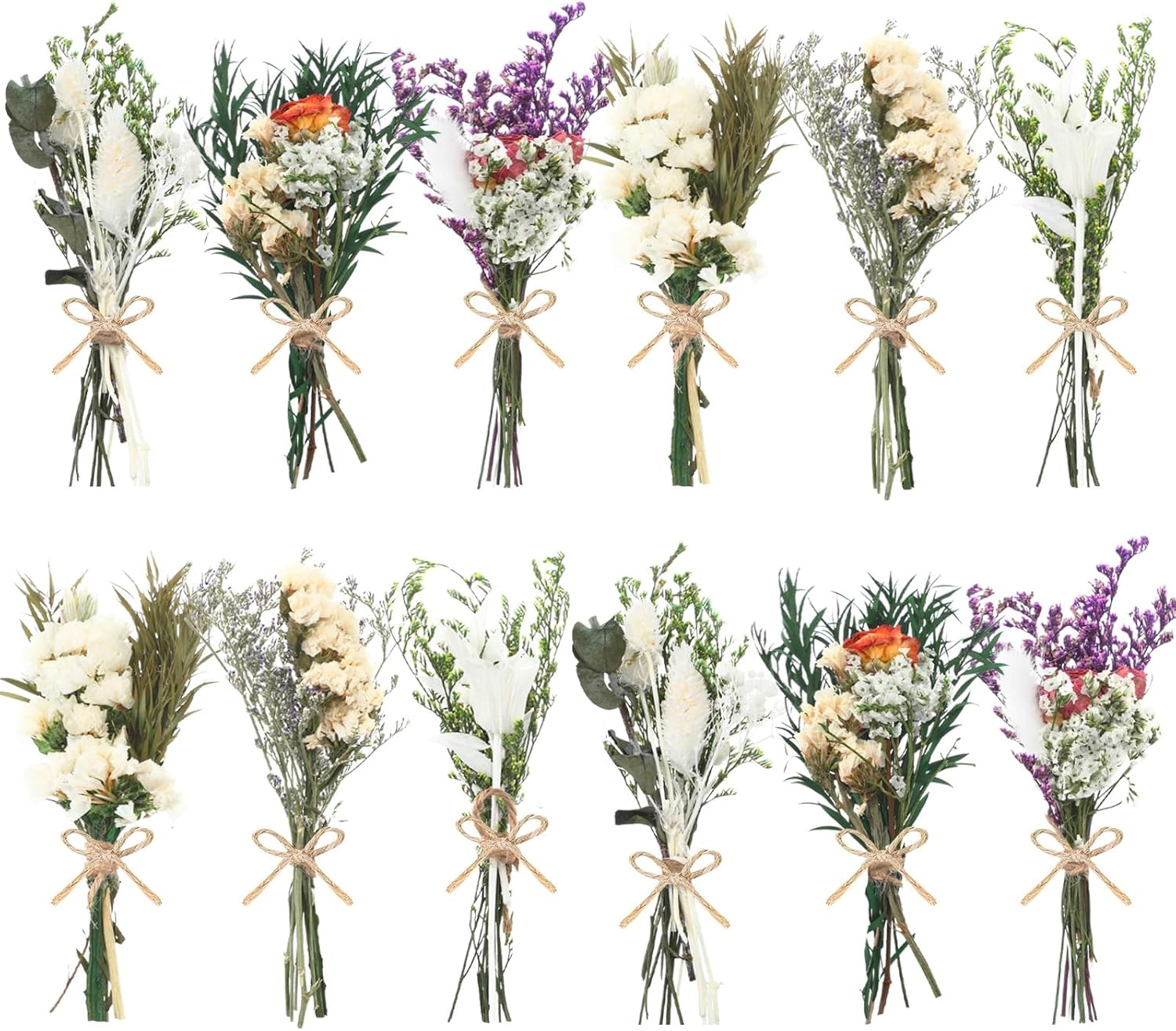12/24 Pack Dried Flowers for Vase Various Mini Bouquet Dried Small Wildflowers Natural Real Flowers Bulk for Crafts DIY Wedding Decor (12, White)