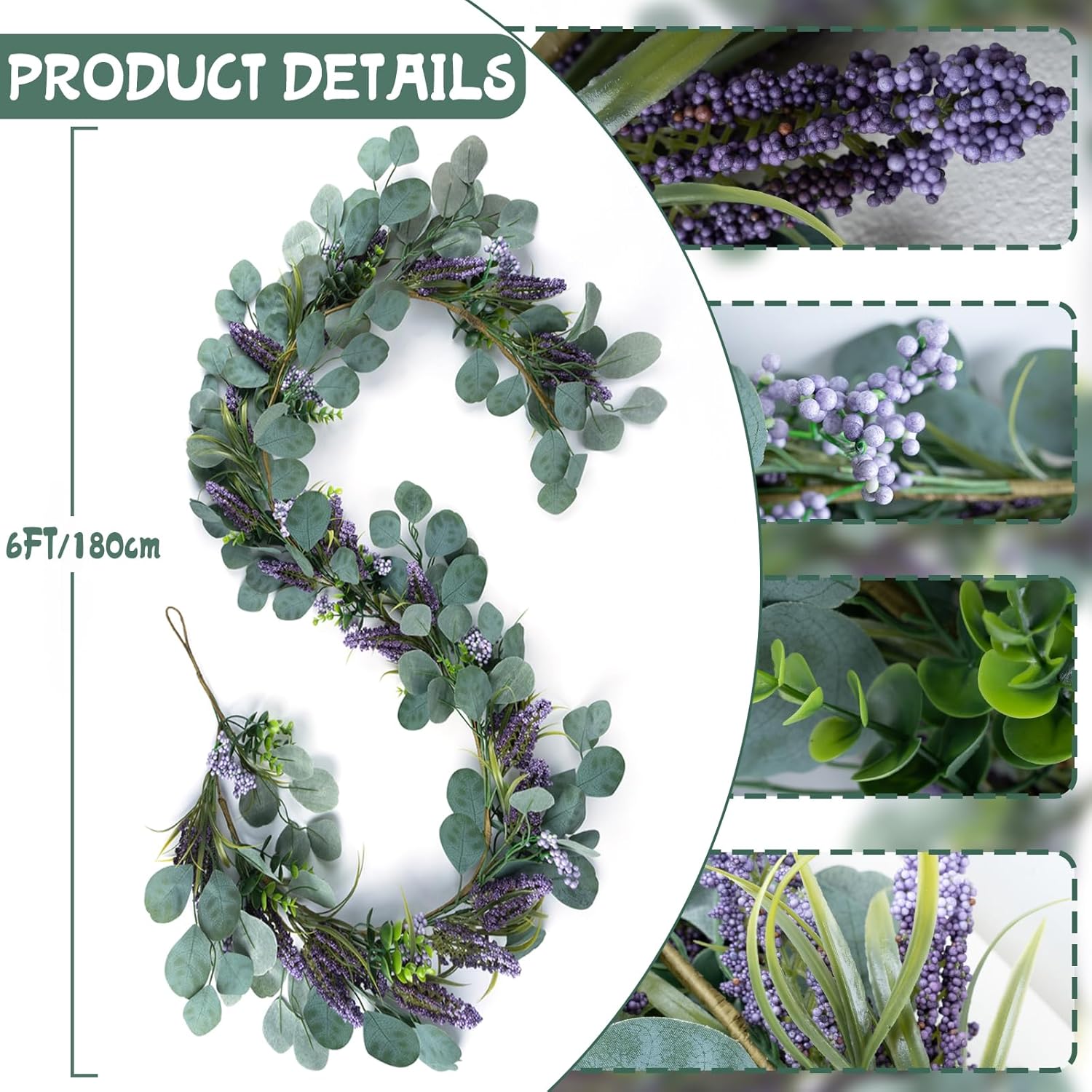 • 【All Season Purple Garland Decor】 The eucalyptus garland is handmade,Designed to fit seamlessly into any season, our Purple garlands for decoration is the perfect year-round decoration.To achieve the perfect shape and arrangement, simply gently expand the flowers and stems as needed