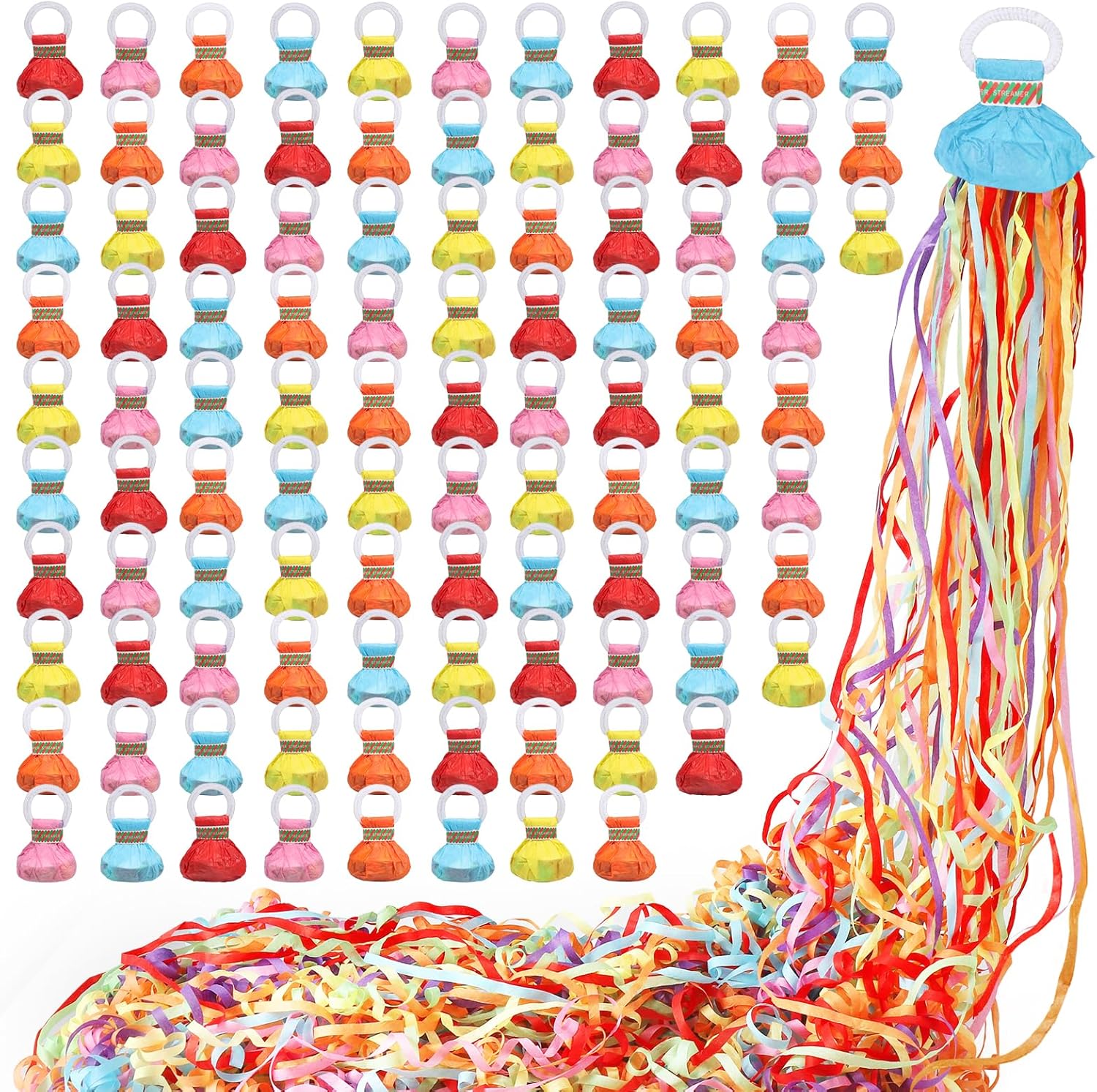 No Mess Streamers 100pack, Colorful Confetti Poppers,Hand Throw Party Poppers No Mess for Birthday, Graduation, Wedding Send Off, Engagement Party Favors(Colorful 100Pack)